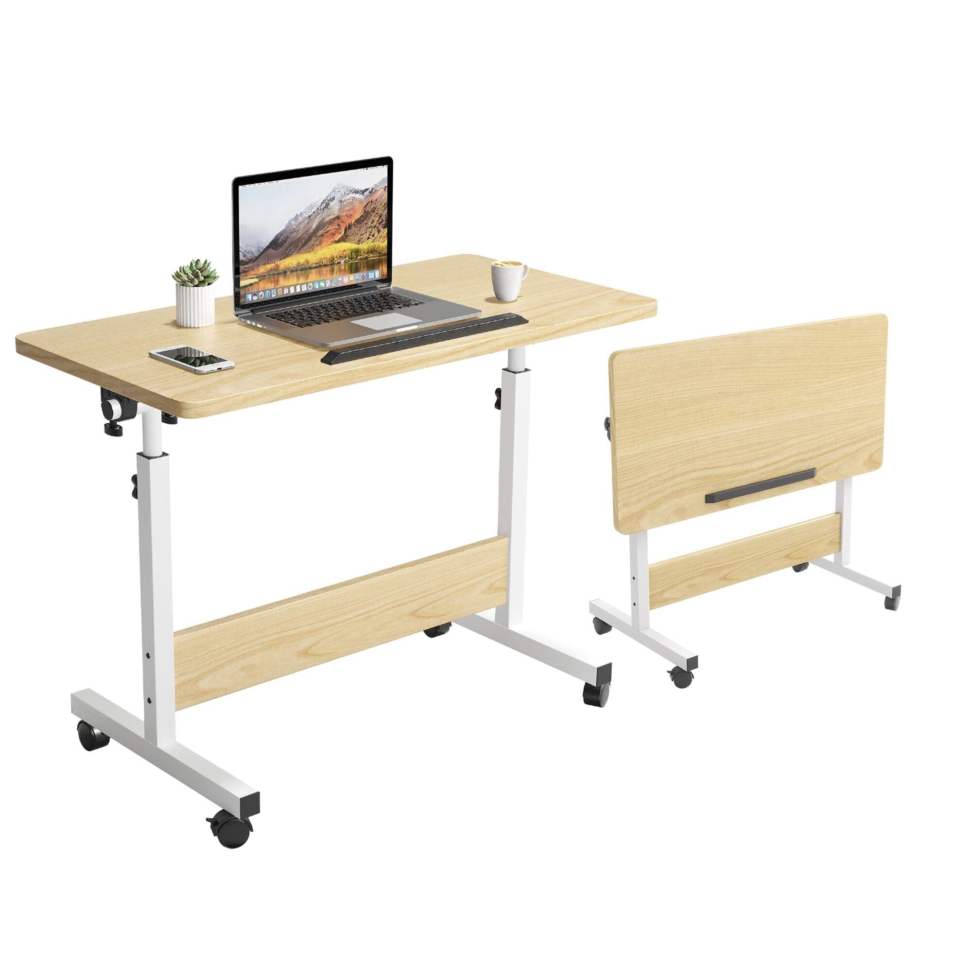 KUKERサイドテーブル キャスター付き 昇降式デスク 折りたたみデスク パソコンデスク ベッドサイドテーブル スタンディングデスク 介護用テーブル 移動式 オフィスデスク 高さ調節 幅80cm×奥行40cm×高さ65~87cm(ナチュラル)