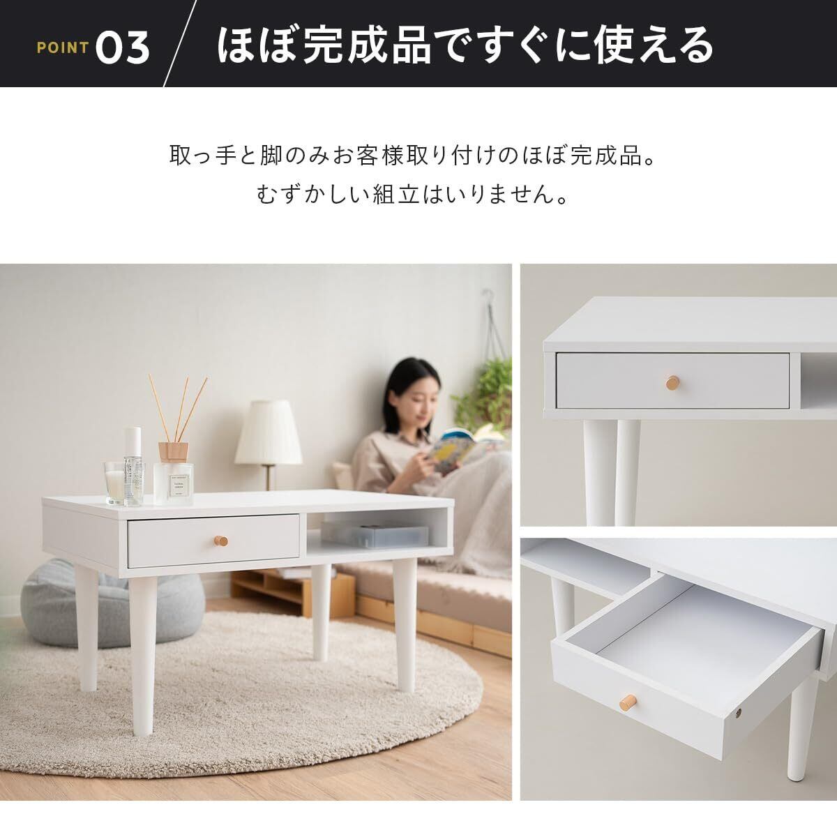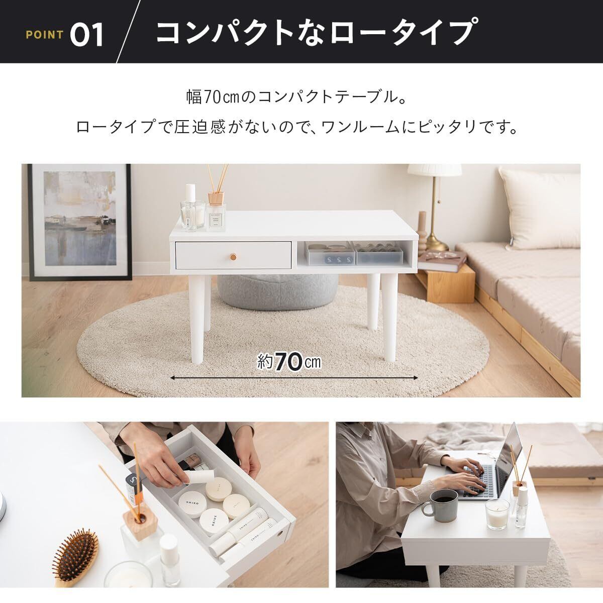 エムール コンパクト ロータイプ テーブル ローテーブル Mystic ホワイト 幅70㎝