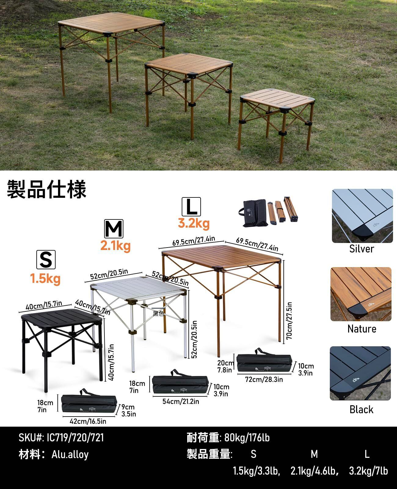 【iClimb (アィクライム)】 アウトドアテーブル/机 キャンプテーブル/机 安定 アルミ製 ロールテーブル 折りたたみ コンパクト 軽量 耐荷重80kg 耐熱 防酸化処理 つや消し 収納袋付き [サイズ S/M/L] (M-52X52X50)