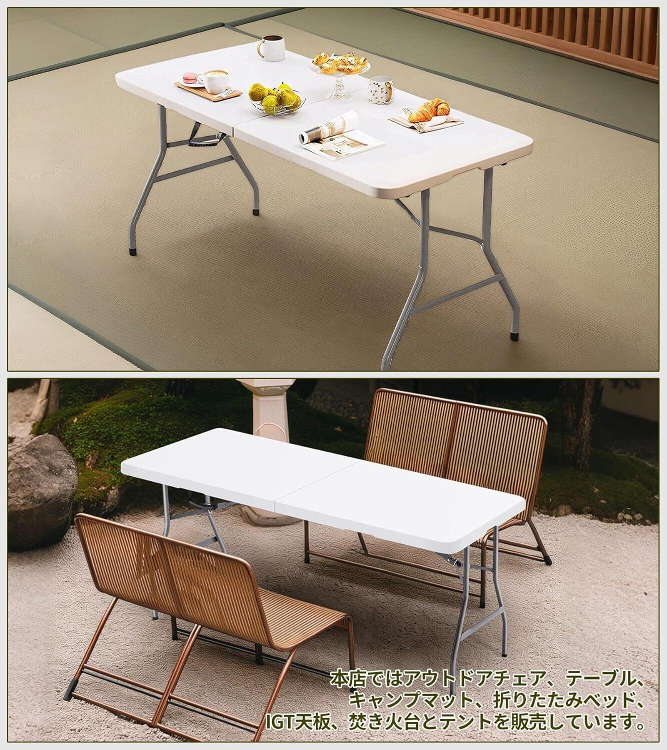 【さまざまなシーンに適用】室内や屋外に置くだけで、おしゃれな空間を演出できます。バルコニー、リビングルーム、台所、浴室、子供部屋、ガレージなどで、臨時のお客様を迎える際に使用できます。屋外でも非常に便利です。庭、公園、ピクニック、キャンプ、釣り、BBQ、花見、ハイキング、運動会、フェスティバル、大規模な集まりなどで使用できます。さらに非常にユニークな使い方として、防静電作業テーブル、会議テーブル、勉強机、DIY折りたたみテーブルとしても使用でき、非常に柔軟で、移動が簡単です。