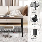 【キャスター付きコーヒーテーブル】脚部には安定性に向こうなアジャスターと移動が簡単なキャスターが付き(ロック機能を兼ね備えたキャスター付きなので移動もラクラク)、どっちでも床を傷つけませんので雰囲気や機能性に合わせて設置方法をお選びいただけます。