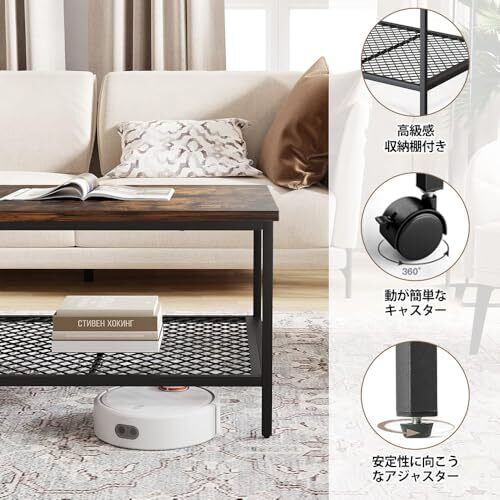 ローテーブル 収納棚付き センター コーヒーテーブル キャスター付き おしゃれ ローテーブル 一人暮らし 幅80cmリビング テーブル コンパクト ヨーロッパ風 ルーム テーブル