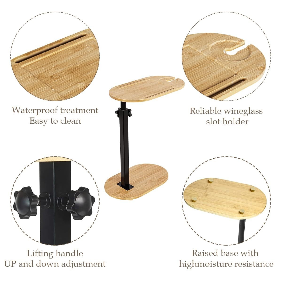 サイドテーブル 昇降式 木製 ワイングラスホルダー付き ベッドサイドテーブル 360度回転 防水 収納 高さ調節可能 ソファ横 テーブル 浴室用 おしゃれ side table
