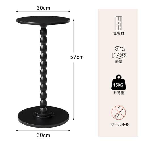 Aibiju サイドテーブル 丸型 おしゃれ ベッドサイドテーブル 小さめ 軽量 さいどテーブルソファ横 一人暮らし 省スペース ミニテーブル丸 幅30×奥行30×高さ57cm 食卓 ブラック YD-RST001B