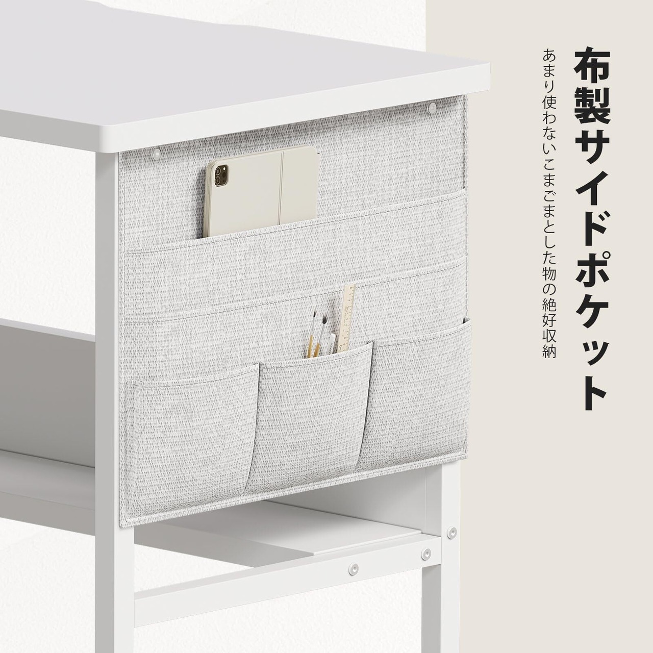 YeTom デスク パソコンデスク 机 pcデスク 幅80cm 勉強机 収納袋付き学習机 オフィスデスク 作業机 モニターアーム取付対応 組立簡単 白い