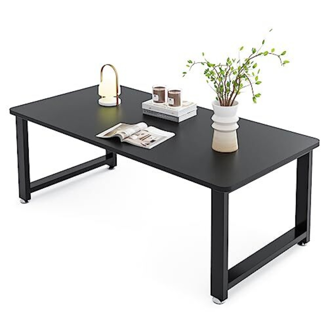 DEWEL ローテーブル 幅80×奥行40×高さ33cm センターテーブル 机 コーヒーテーブル リビング ソファテーブル スチール脚 アジャスター付き 木製 低い 和室 ロータイプ (ブラック, 幅80cm)