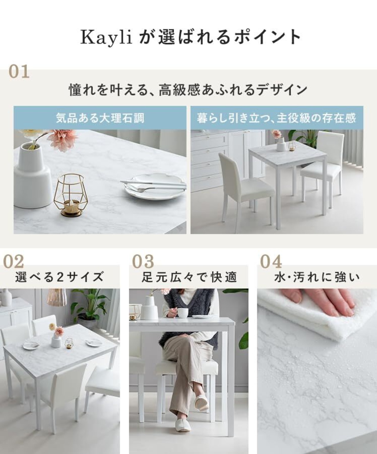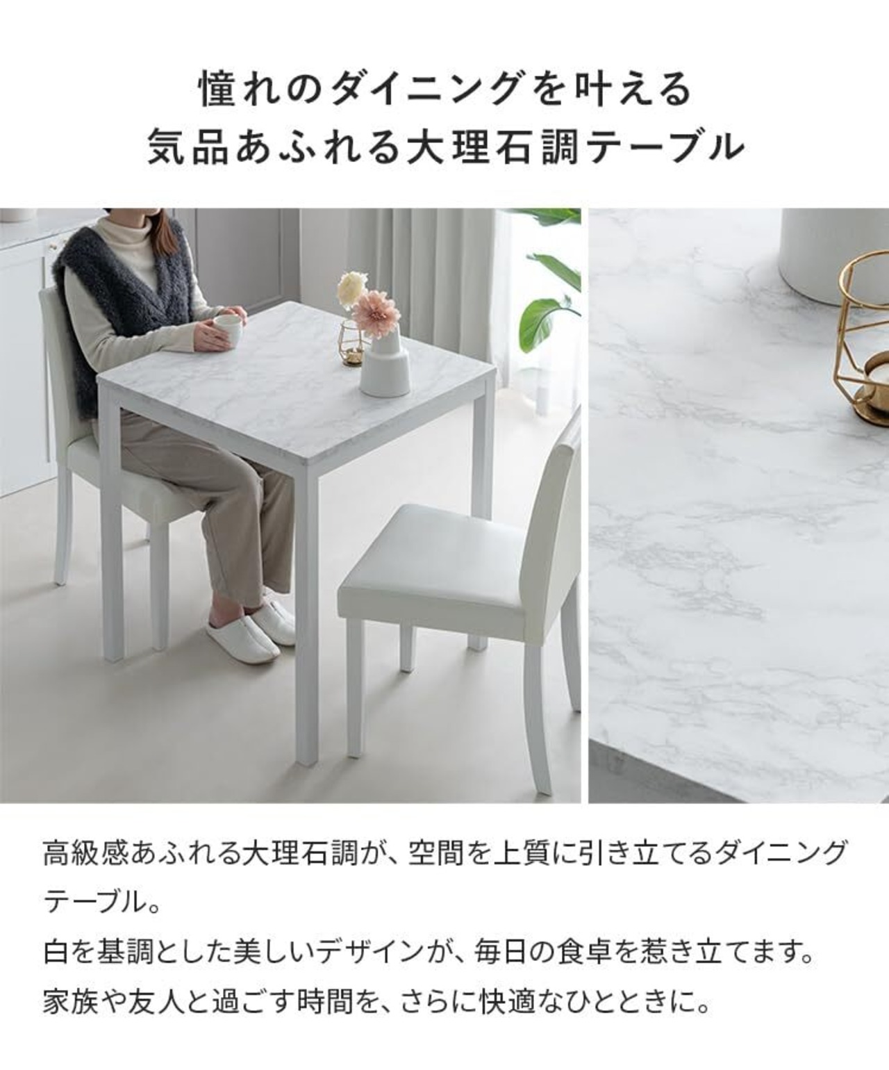 エア・リゾーム ダイニングテーブル 2人用 おしゃれ カフェ 食卓テーブル 幅70cm 奥行70cm 食卓 大理石調 Kayli〔ケイリ〕 (70×70cm)