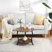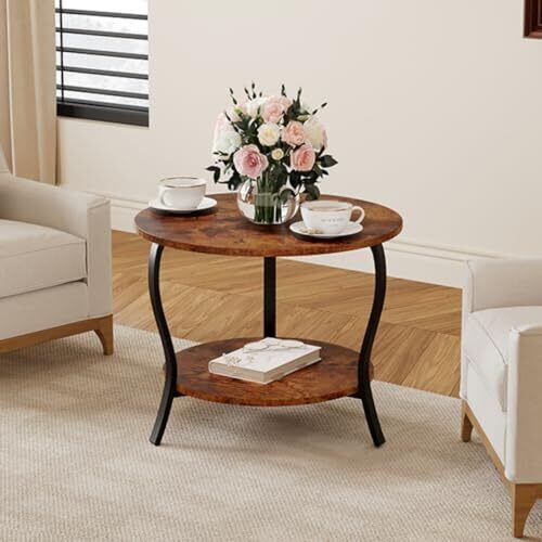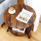 ZEXVIDA コーヒーテーブル 丸型 ローテーブル 幅58×奥行58×高さ48.3cm テーブル 2段 リビングサイドテーブル ベッドサイドテーブル ナイトテーブル ベッド横 ちゃぶ台 木目調 (ブラウン)