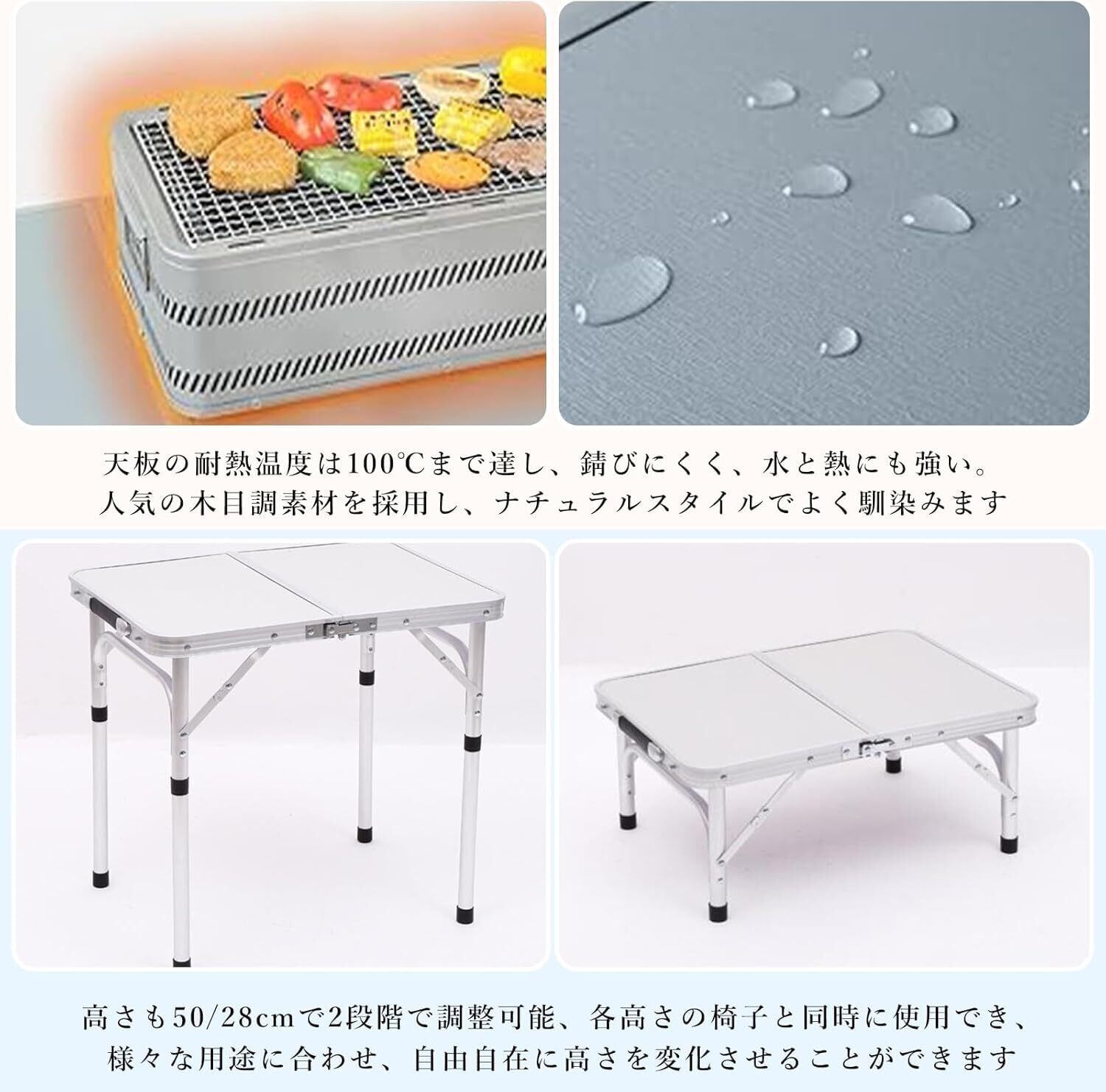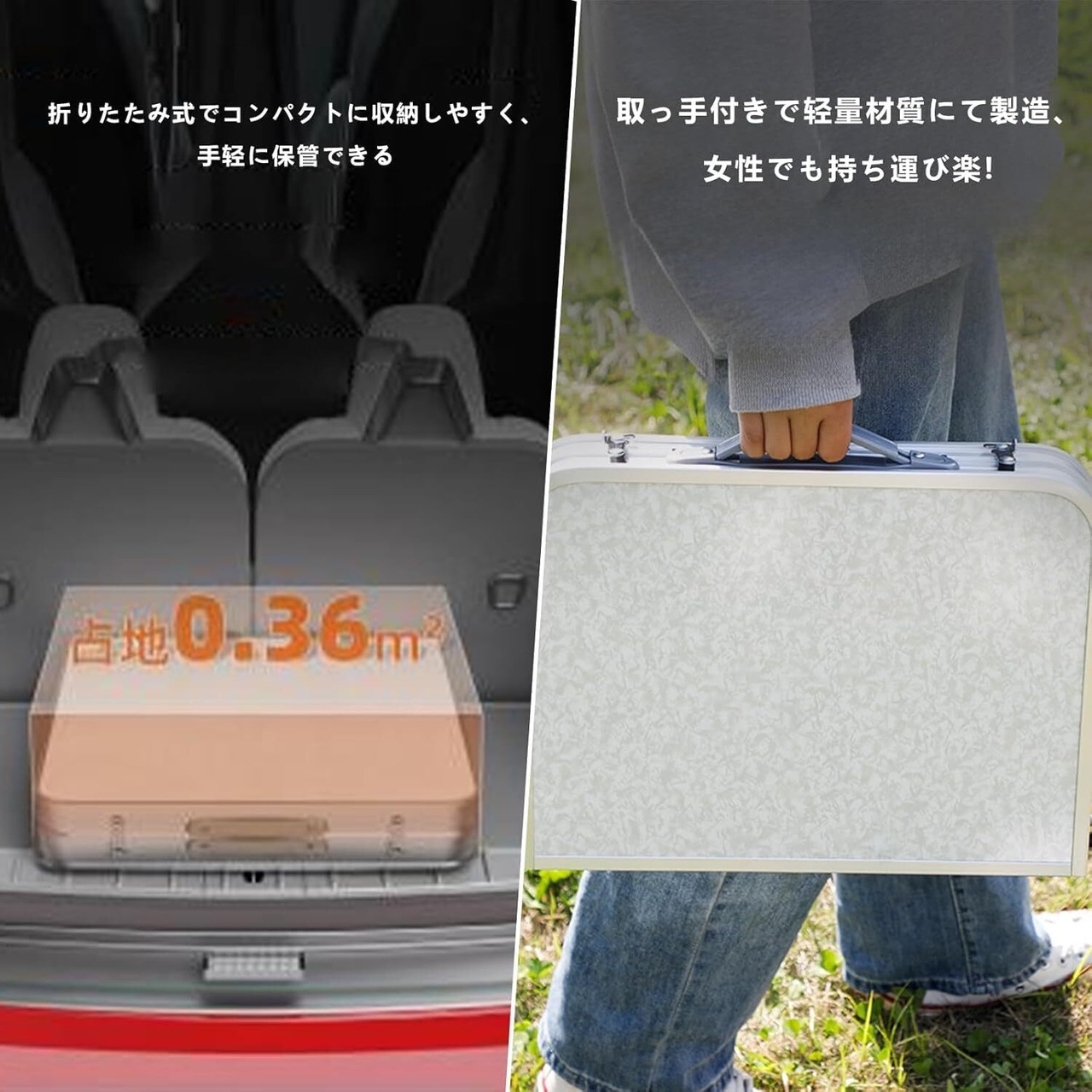 【高さ2段階調整】キャンプ テーブル 折り畳みテーブルの高さ28cm/50cm の2段階調整が可能で、各高さの椅子と同時に使用することができ、用途に合わせて自由自在に高さを変えることができます。屋外のバーベキューグリルテーブルの重量はわずか3キロです。軽量で、折り畳んだ後のサイズが小さく、持ち運びや収納に便利です。また、数秒でインストールすることができます。それはすぐに折り畳まれ、ハンドルを運ぶことによって運ぶことができます。