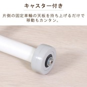 【天板を下げるとき】レバーを握り、天板の中央よりやや外側に手を当てます。天板に体重をかけ、斜め下方向に押してくださいレバー側は固定車輪、反対側は稼働車輪になっています。【天板を上げるとき】レバーを握り、天板をゆっくりと持ち上げます。フレームを足で抑えるとスムーズに上がります。