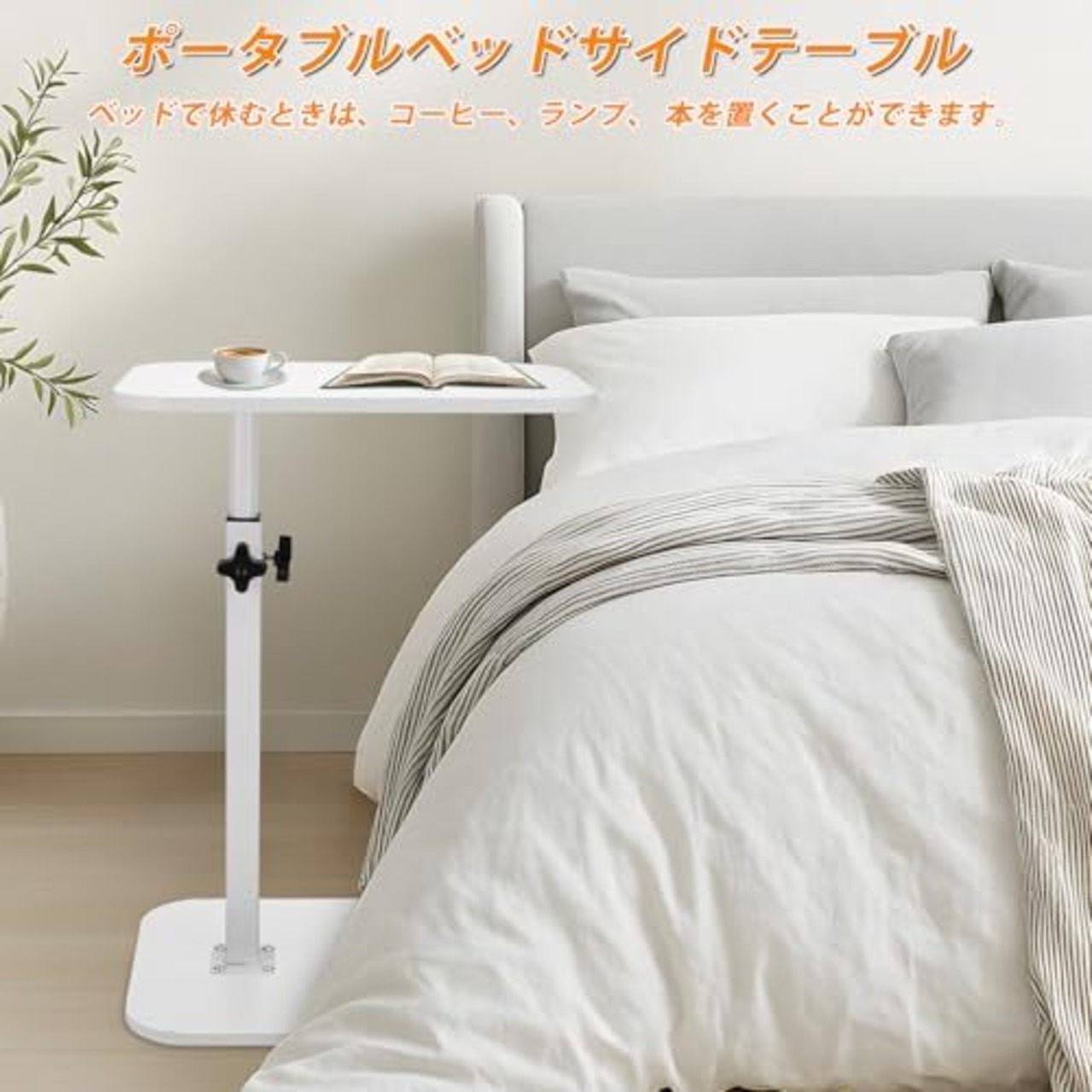 XXITO 昇降式サイドテーブル 360°回転 高さ調節 45〜80cm コの字型 幅30×長さ40cm ベッド ソファ 介護 勉強 仕事 学習用 組立簡単 耐水 耐熱 安定 耐荷重優秀 省スペース 小型 (白)