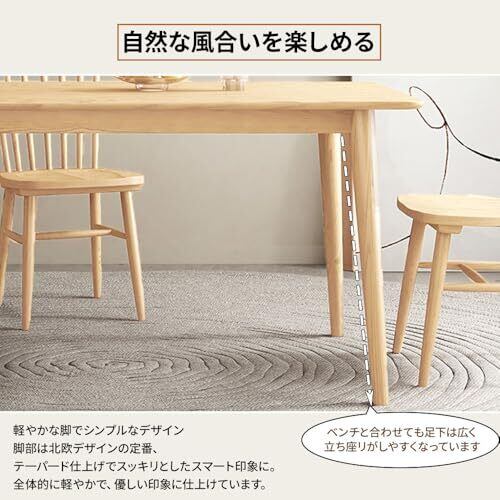 【シンプルデザイン】高級天然木材を100%使用したダイニングテーブル。シンプルなデザインなので様々なインテリアと相性よく、どんなお部屋にも合わせやすい! 置く場所を選ばず、長年使っても飽きがきません。家庭ダイニング、カフェ、オフィス、休憩室、会議室、学校の食堂、集会所、公会堂など様 なところで使えます。洗練されたナチュラルな空間づくりにぴったりな人気アイテムです。