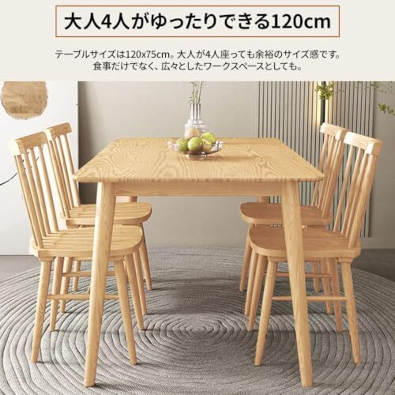 2025 テーブル ダイニングテーブル 食卓 4人用 2人用 幅120×奥行70×高さ75㎝ ナチュラル 天然木 簡単組立 頑丈 100%無垢材 木製 おしゃれ 北欧 和風