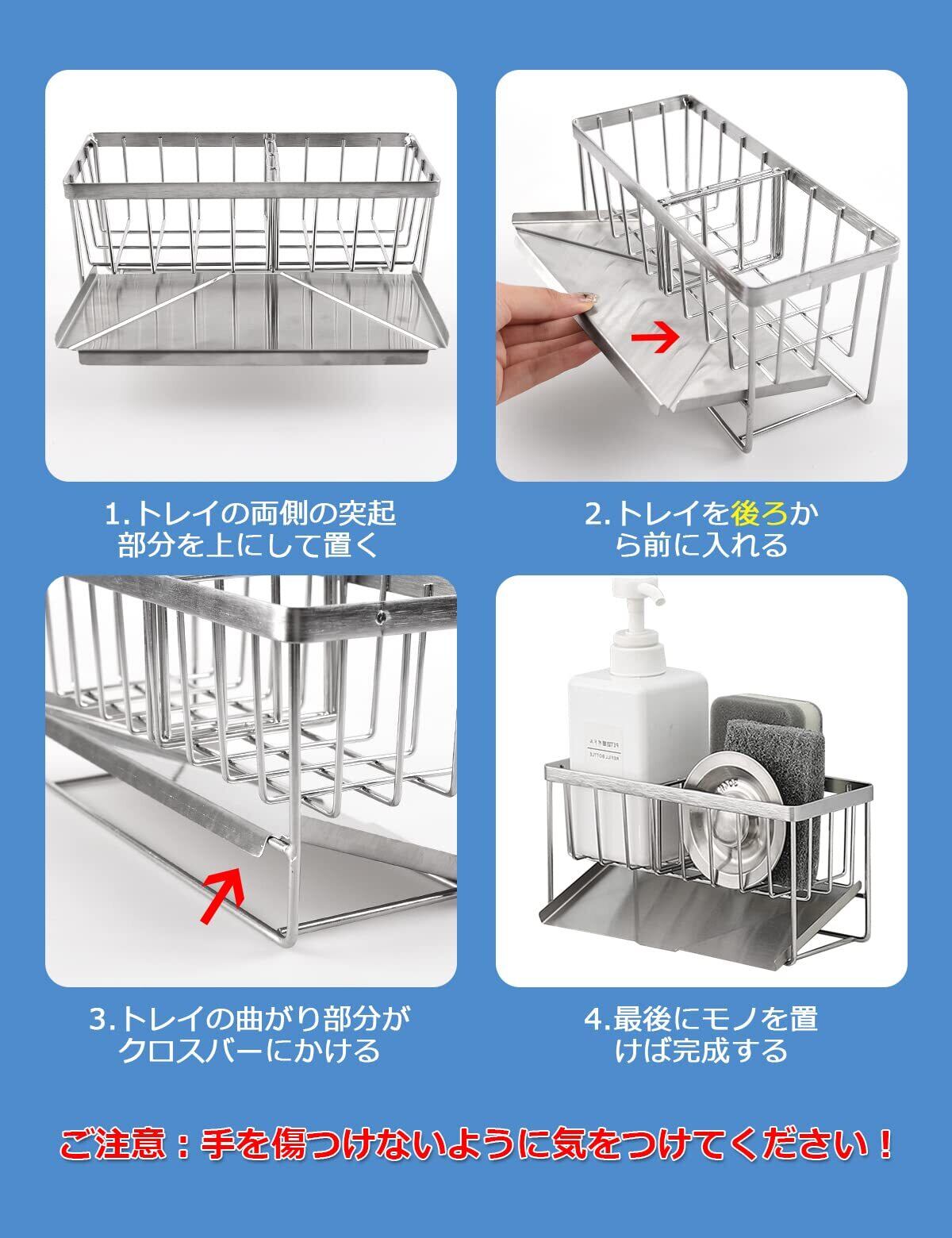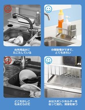 【可動仕切り板、取り付けが簡単】たわしホルダーの中に可動仕切り板があり、物の大きさに合わせて仕切り板の位置を自由に選ぶことができます。分類して置いて、風と通気性、滴の水は実現しました。さらに取り付けは非常に簡単で、工具を必要とせず、1分で完了することができます。