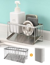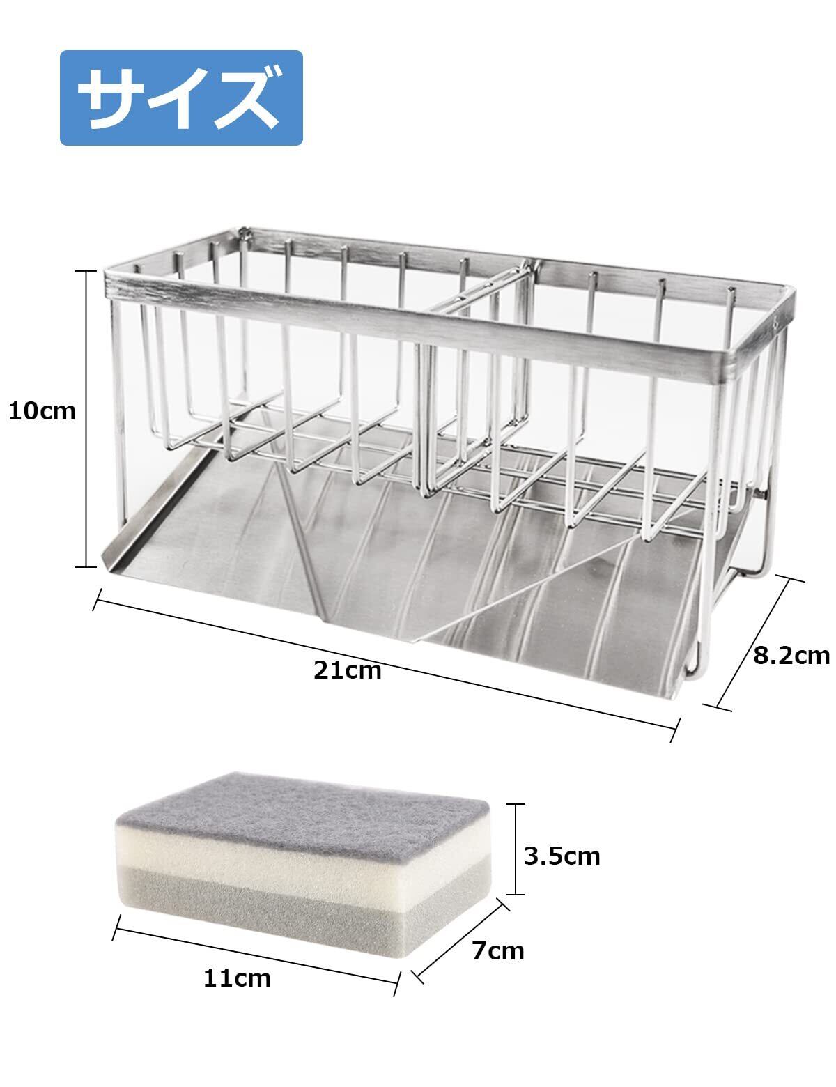 【高品質なステンレス素材】スポンジラックは高品質な304ステンレス素材を使用しており、通常のステンレスに比べて防錆性、耐熱性、耐食性などの性能により優れ、長時間使用してもストレスフリーになりません。