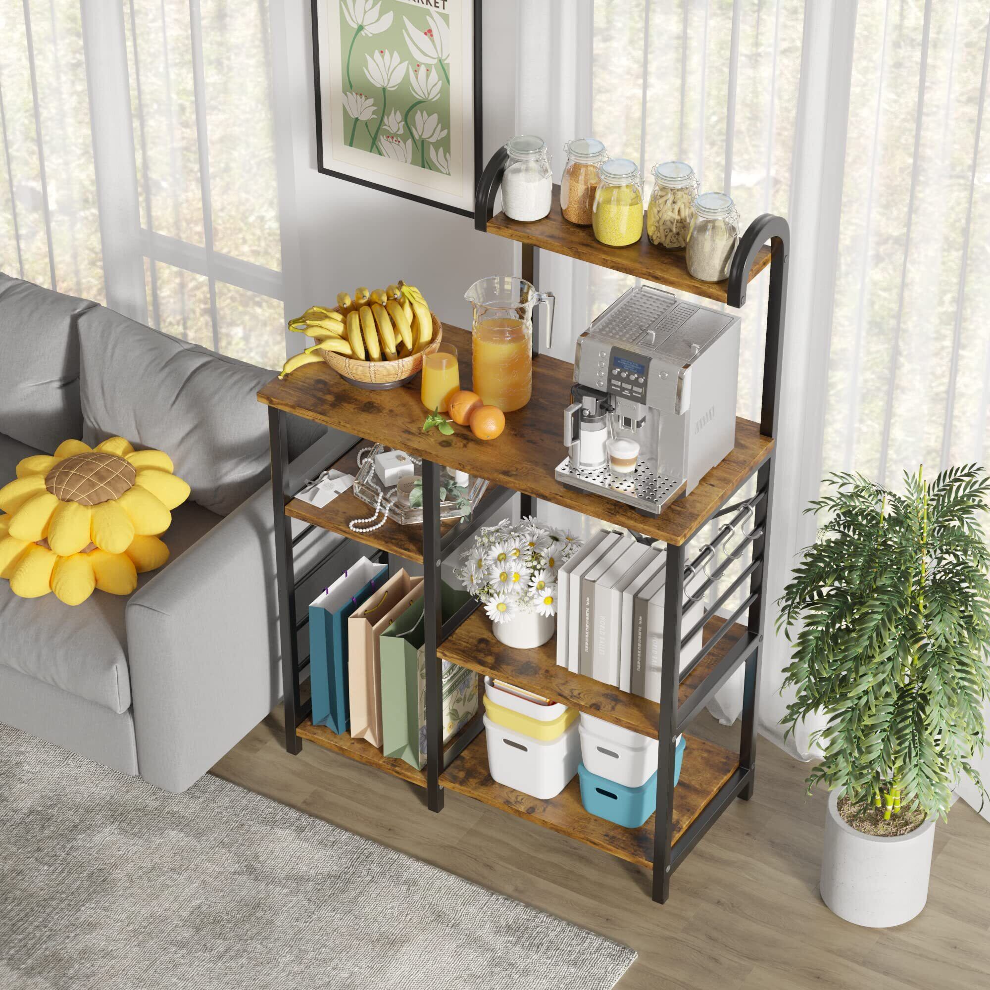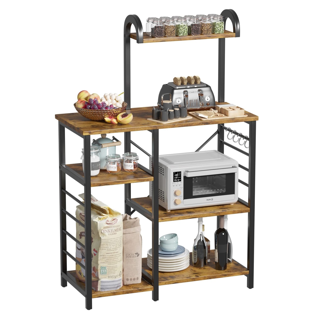 Alebert(アレバート) レンジラック レンジ台 大型レンジ対応キッチンラック 高さ142*幅88*奥行39cm キッチン棚 キッチン収納 ラック レンジボード キッチンカウンター 食器棚 省スペース おしゃれ (ブラウン/黒, Lサイズ)