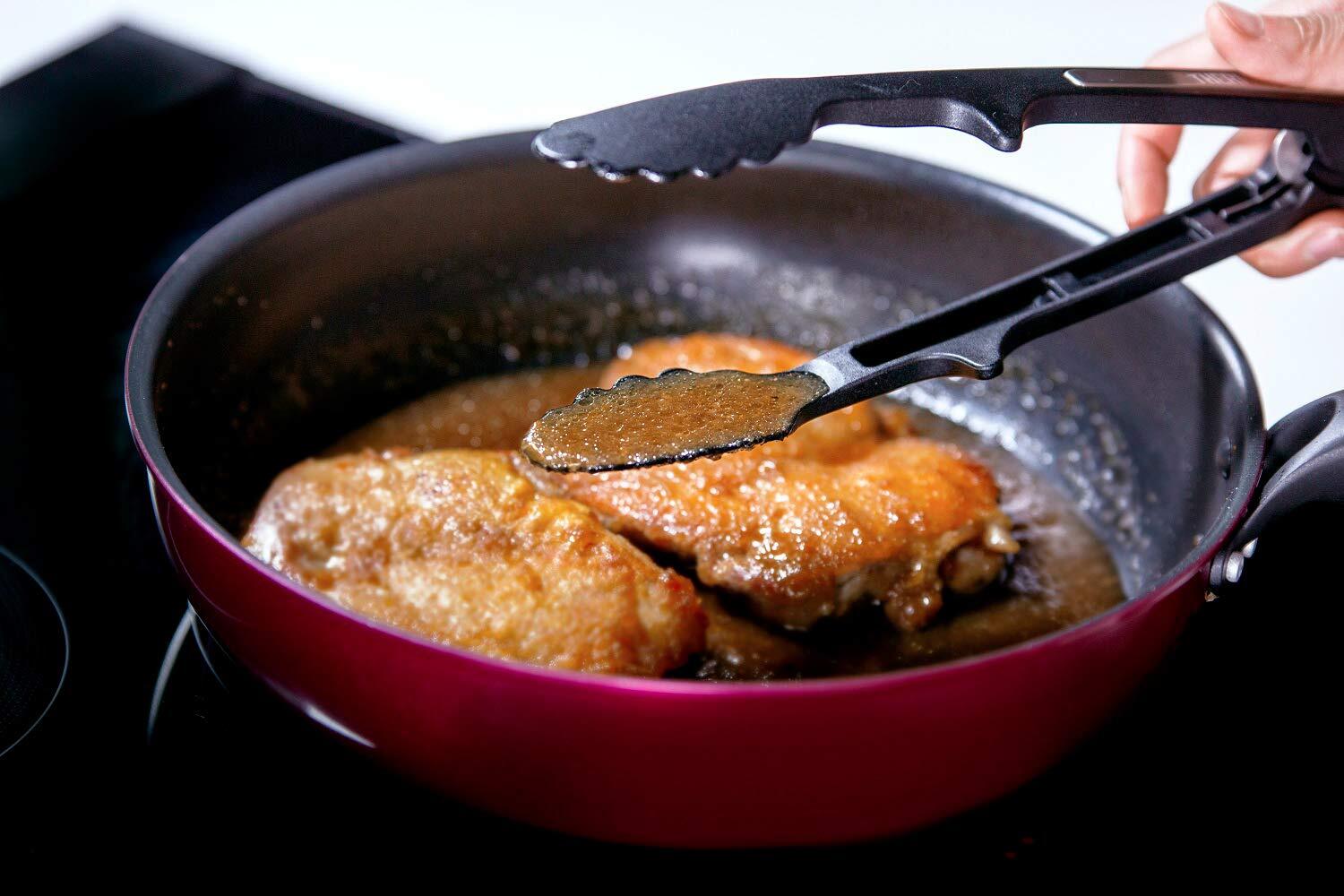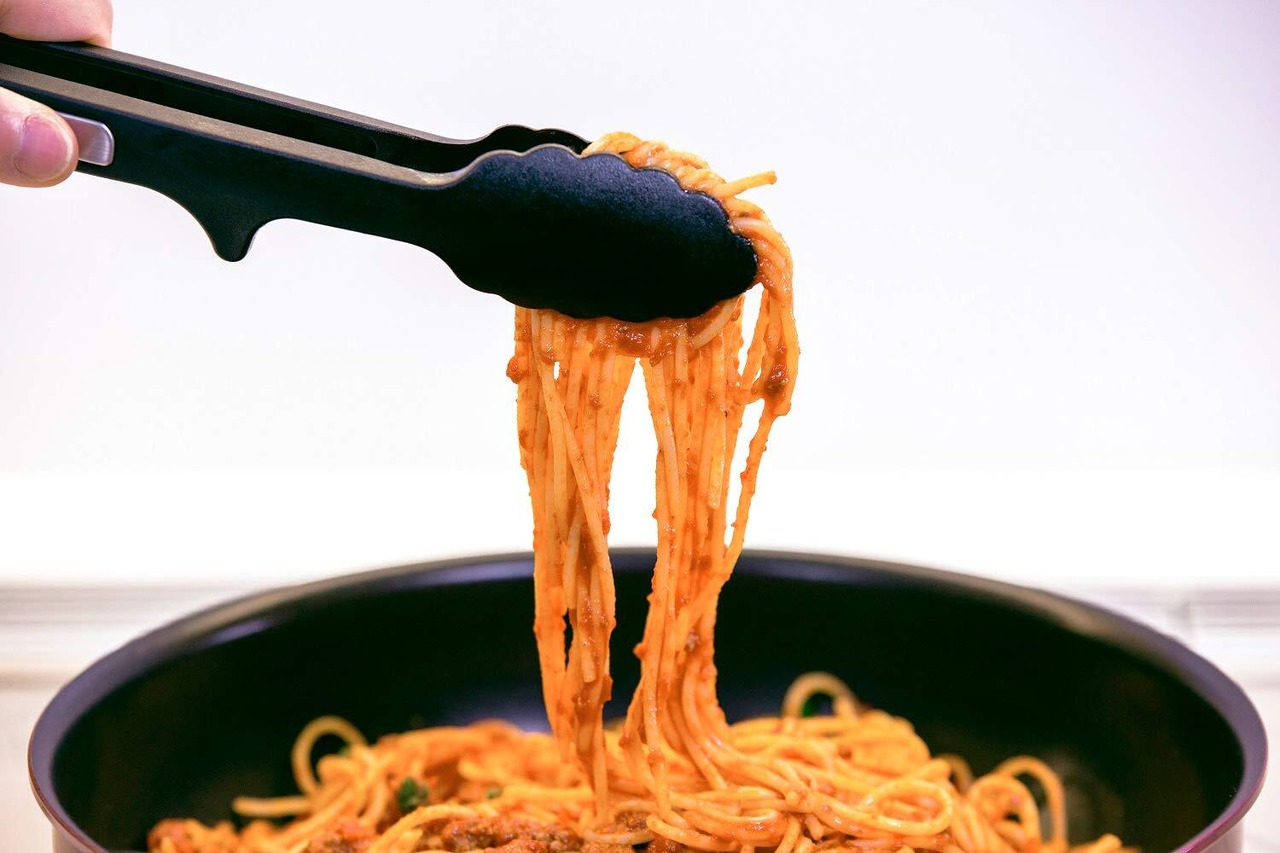 パスタやサラダのとりわけにぴったり!ナイロントング。先端が床に触れない突起付き。