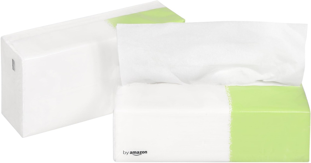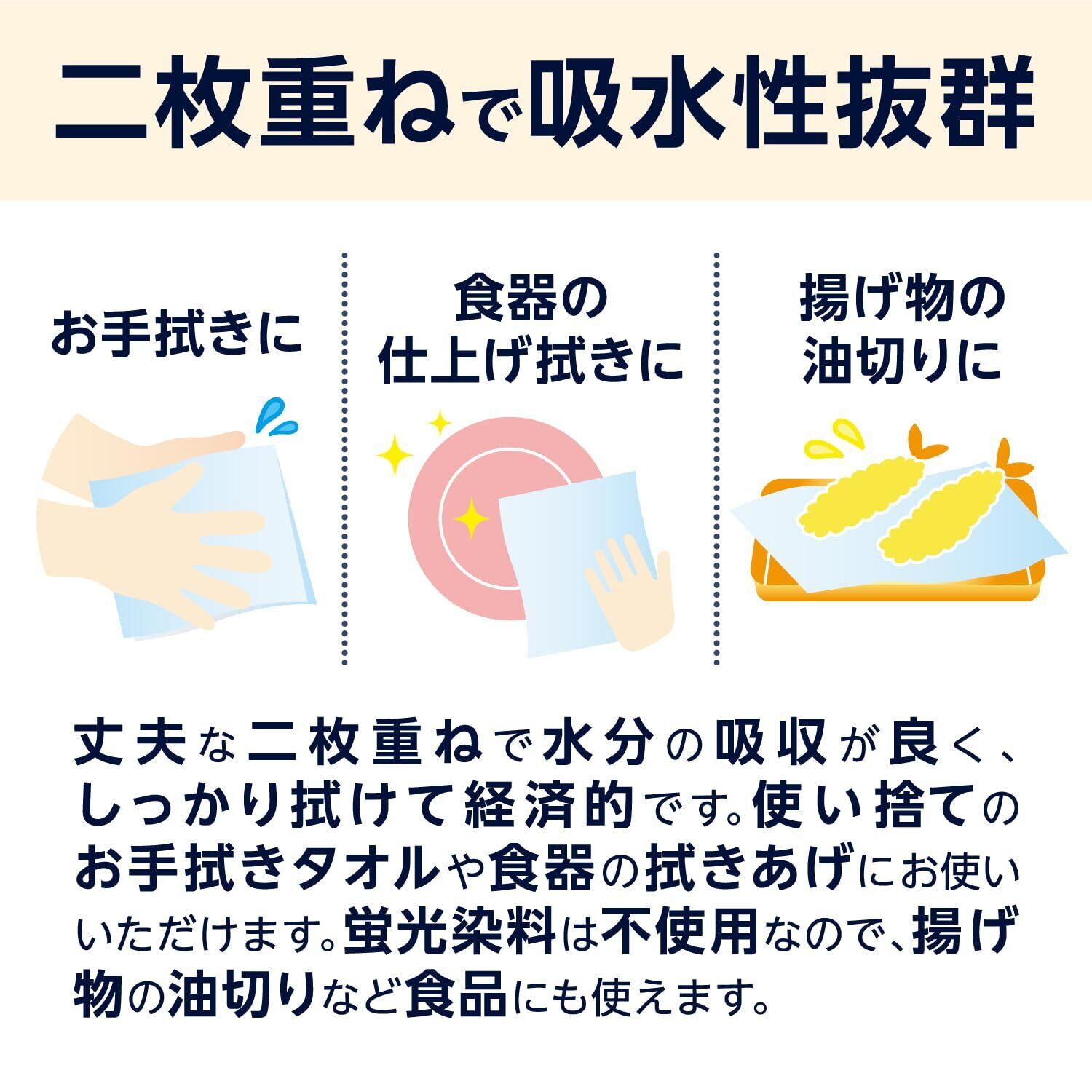ソフトパック包装の2枚重ねペーパータオル。100%パルプ使用で蛍光染料は使用しておりません。