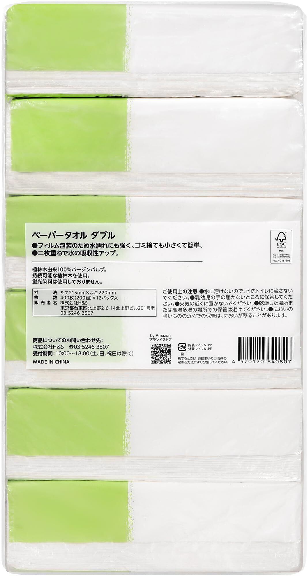 by ペーパータオル ダブル ホワイト FSC認証紙 400枚(200組) 12パック入