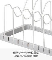 鍋やフライパンのサイズに合わせて仕切りパーツの位置は3cmごとに調整可能。