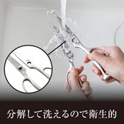 堅牢で洗いやすい鍛造オールステンレス製のキッチン鋏