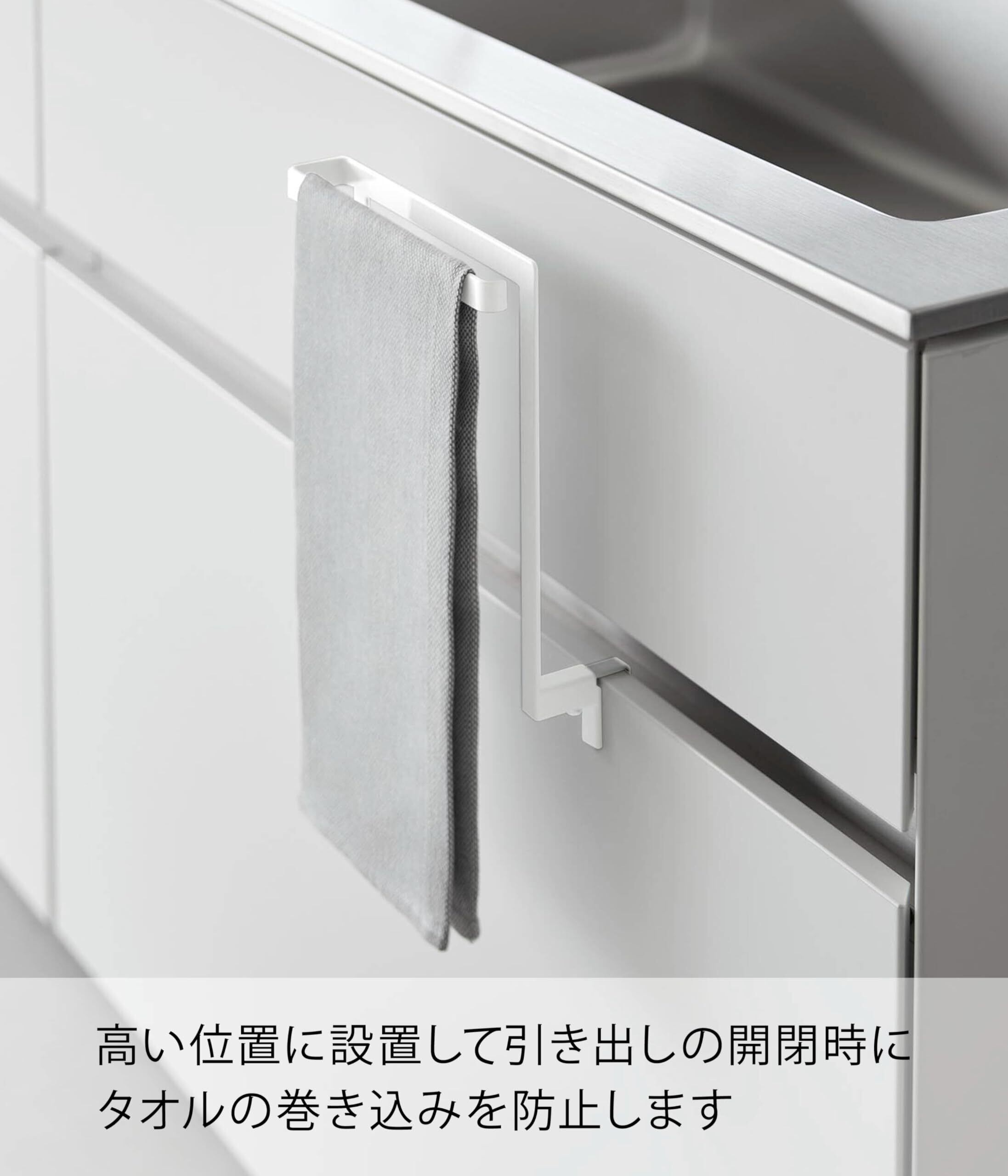 シンク下の引き出しに取り付けながらも高い位置に設置できるのでタオルを巻き込みません。