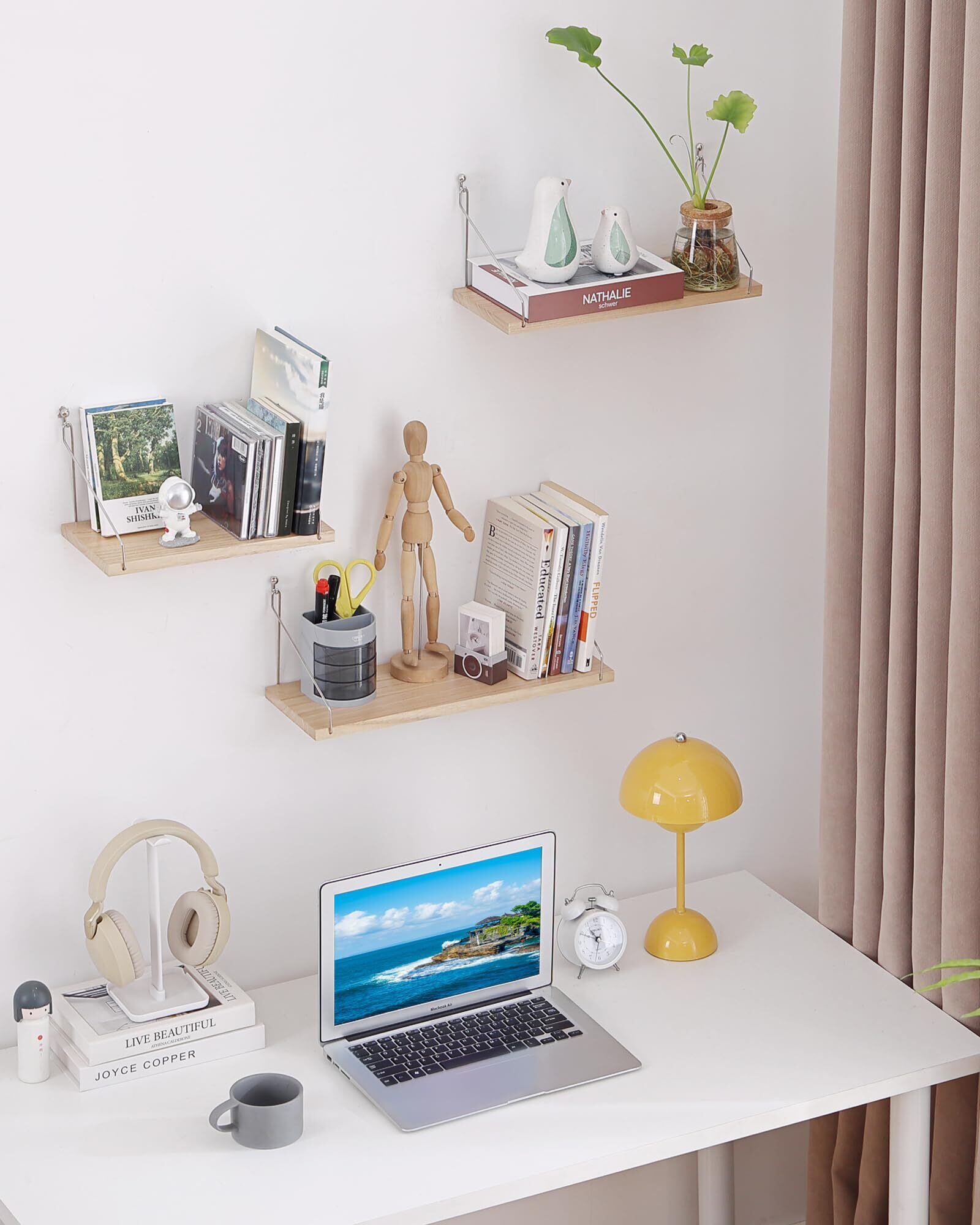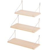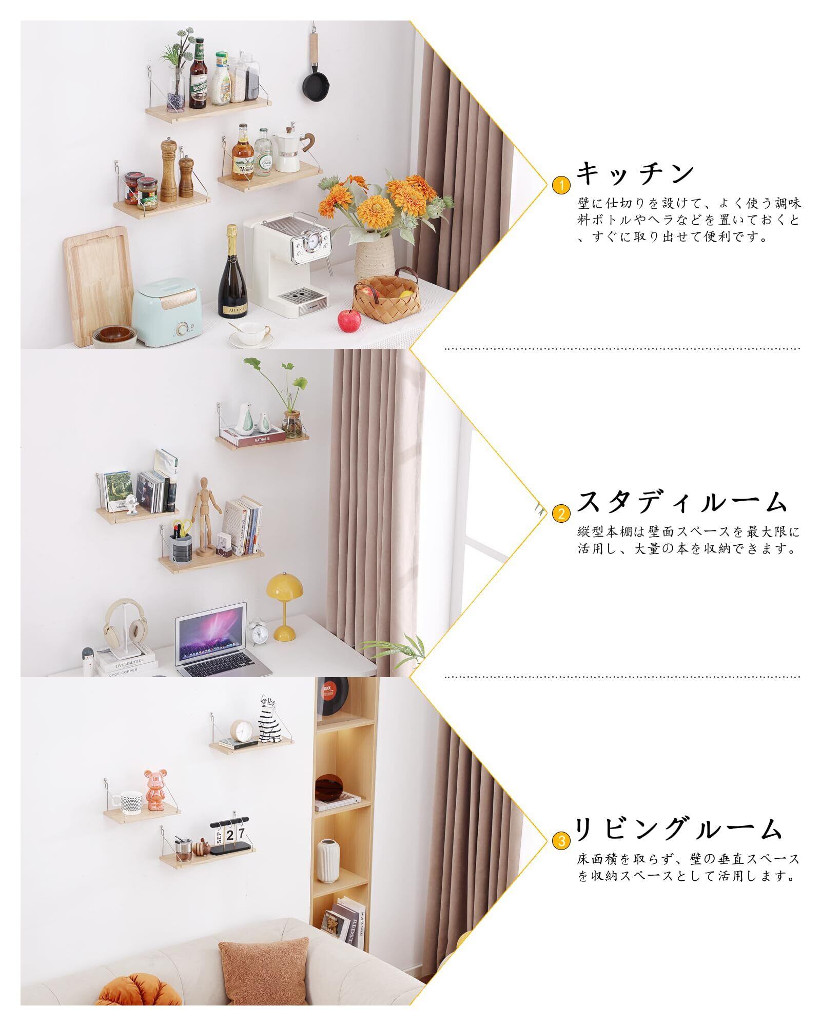 ウォールシェルフ 壁を傷つけない 壁掛け棚 天然木製 賃貸 穴あけない 取り付け簡単 インテリア ウォールラック 玄関 キッチン バスルーム リビング 壁面収納 (3点セット 29+36+42cm ナチュラル)