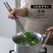 【握りやすい「グラデーション形状」】手にフィットして、細かい食材もつかみやすい菜箸です。 丸みのある四角から円に変化するグラデーション形状で、 箸同士がからみにくく、作業しやすい設計になっています。
