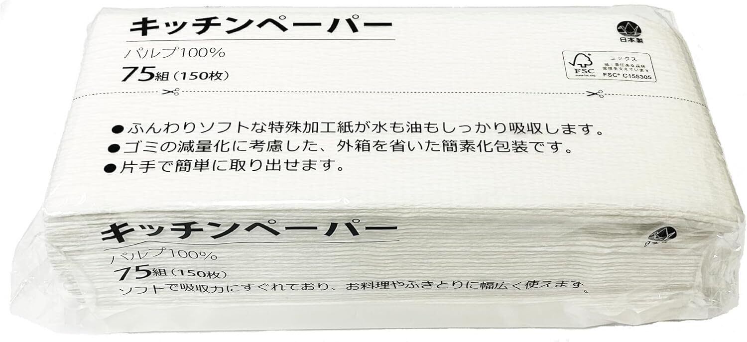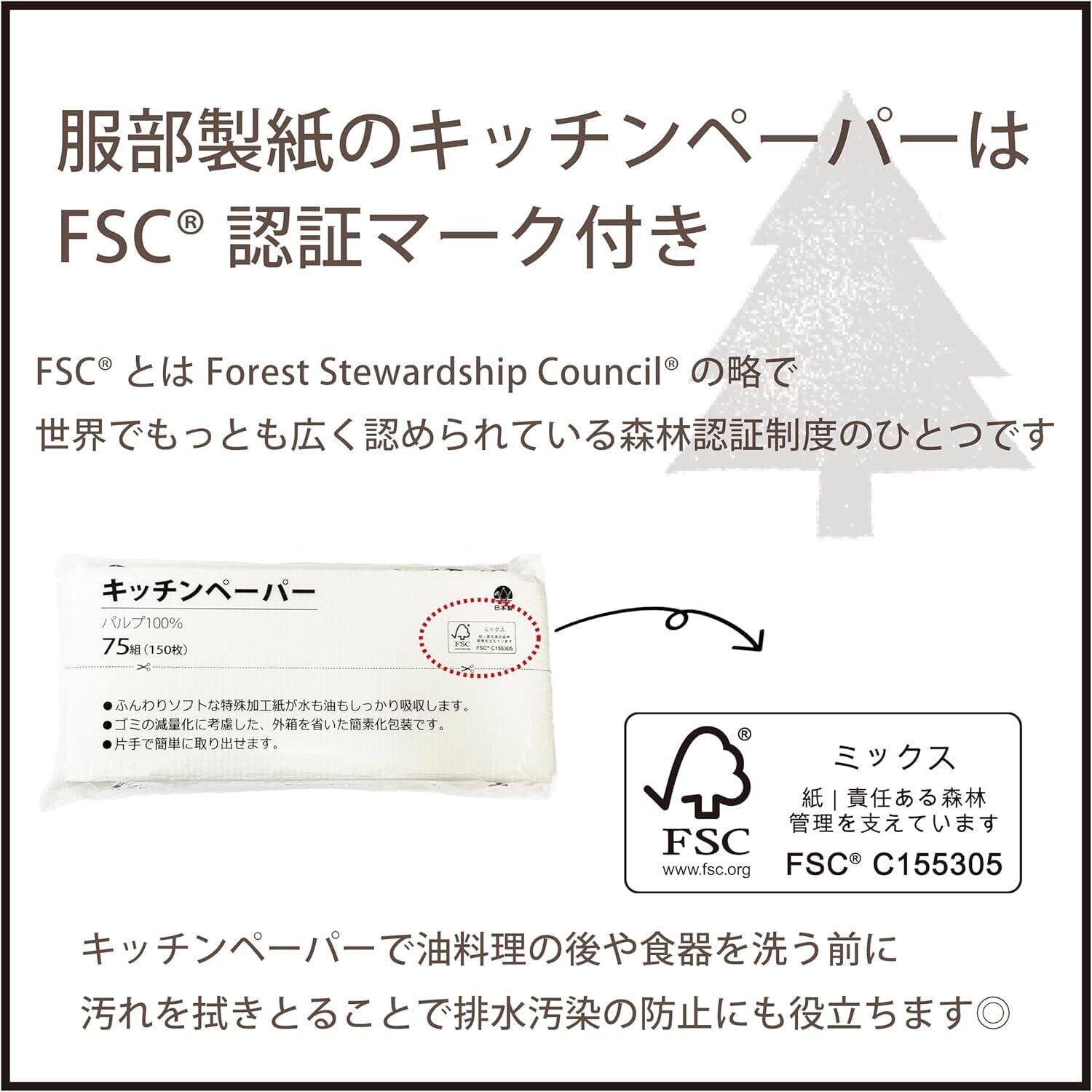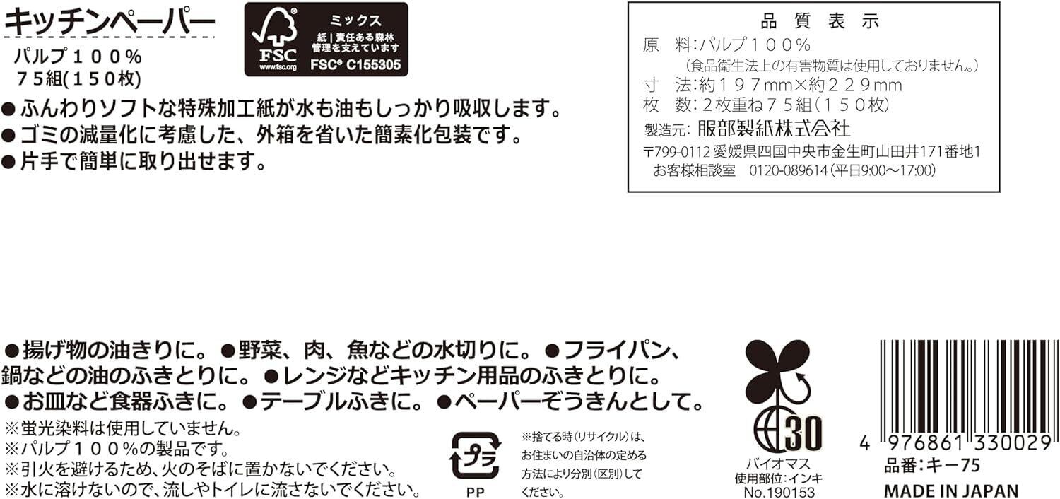 服部製紙 キッチンペーパー 75組 150枚 × 20個セット シートサイズ 約20×23cm パルプ100% 日本製 キー75 【ケース販売】