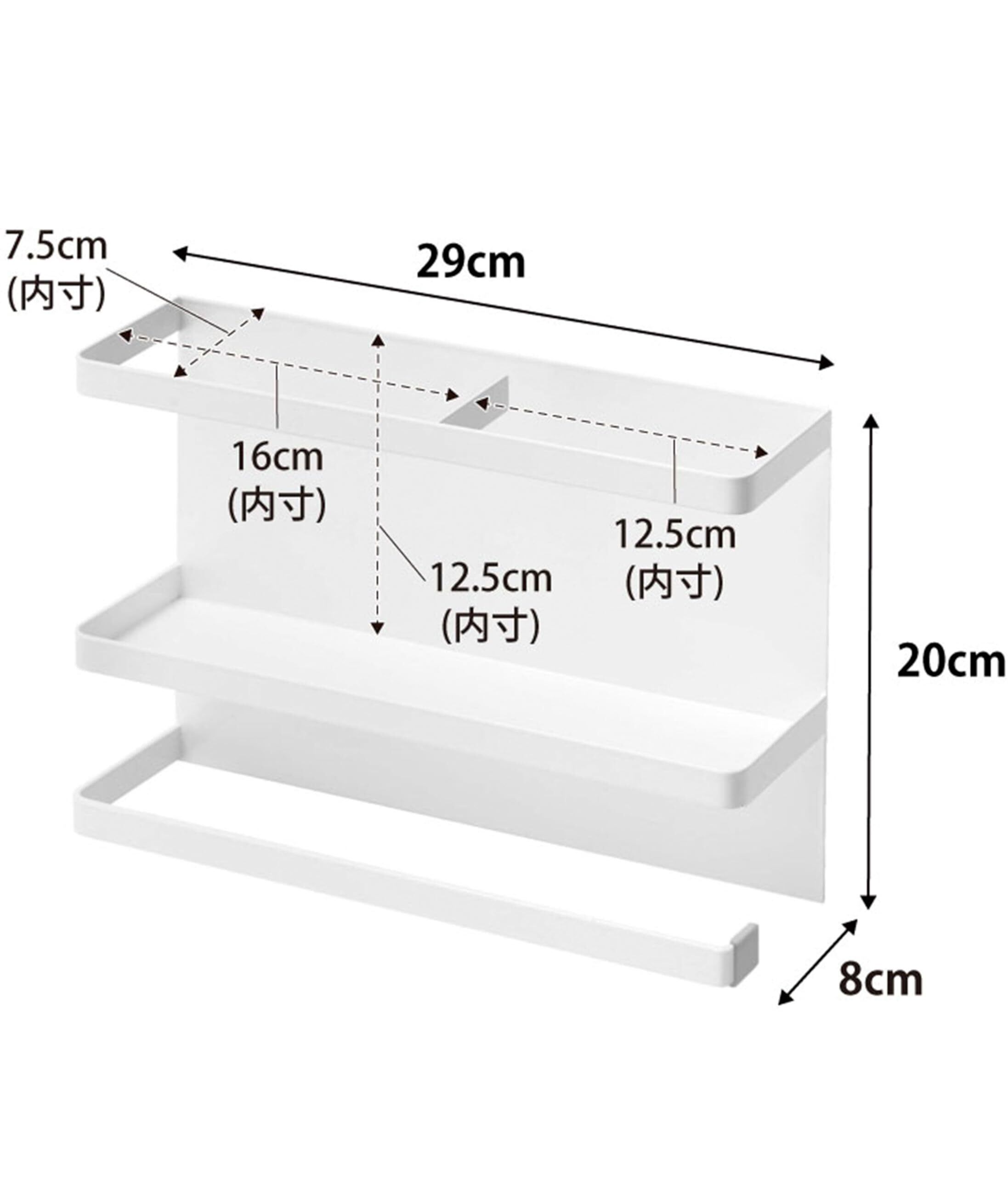 サイズ:本体/幅29×奥行8×高さ20、内寸/左側ホルダー幅16×奥行き7.5×高さ12.5、右側ホルダー幅12.5×奥行き7.5×高さ12.5cm