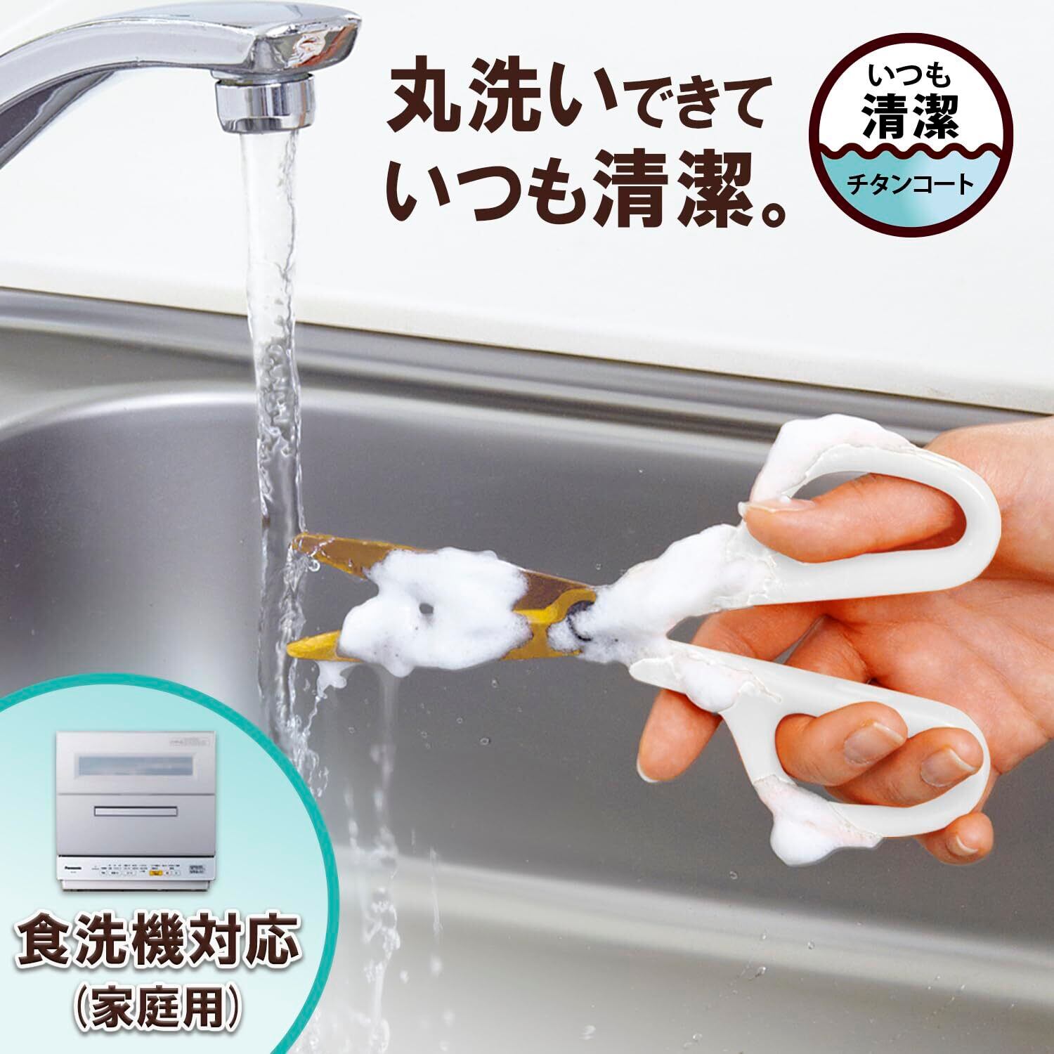 プラス キッチンバサミ ストレスのない切れ味 フィットカットカーブ 洗えるチタン マッシュルームホワイト 35-207