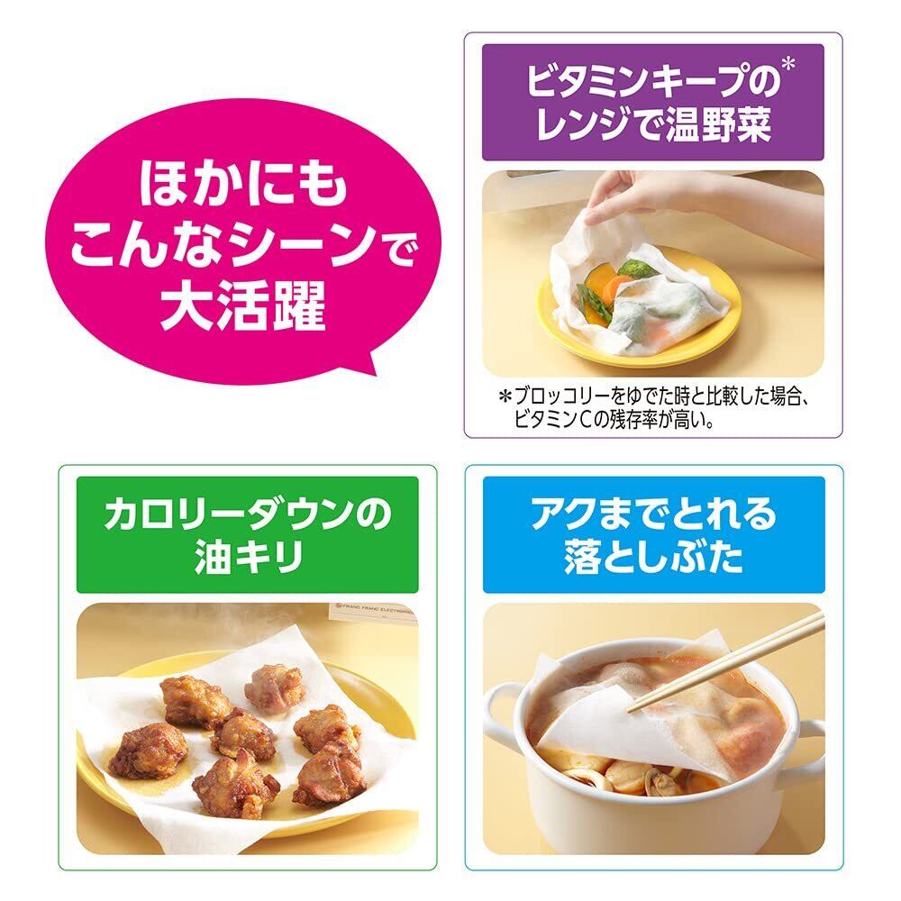 【独自の物性による高い吸収力とろ過力で料理の幅広い用途に使えるクッキングペーパー。】