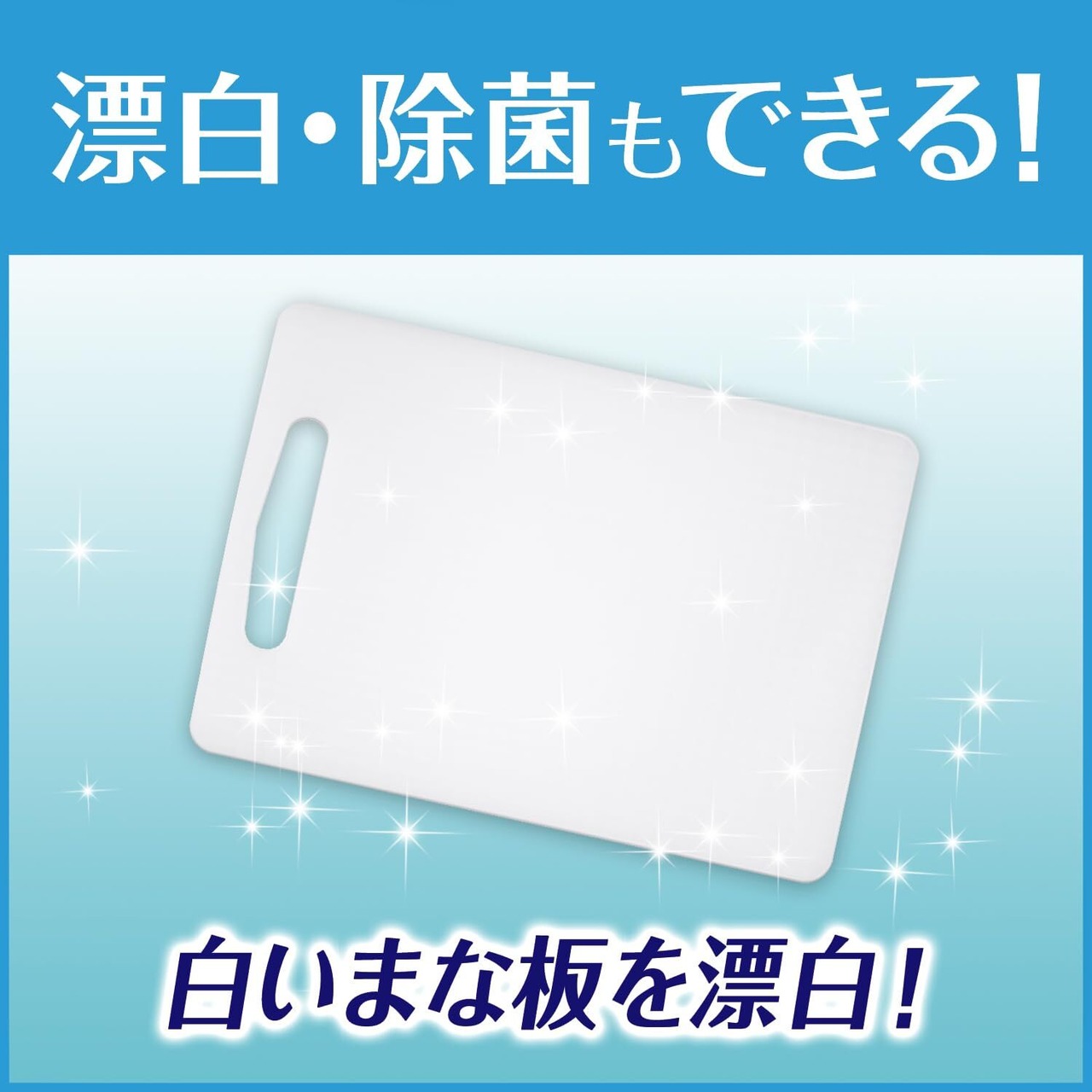 台所用品のヌメリ除去、除菌、漂白、ストレーナー(排水口のゴミ受け)、三角コーナー、シンク、排水口及び排水口まわり等のヌメリ除去、まな板、包丁の除菌、茶しぶの漂白