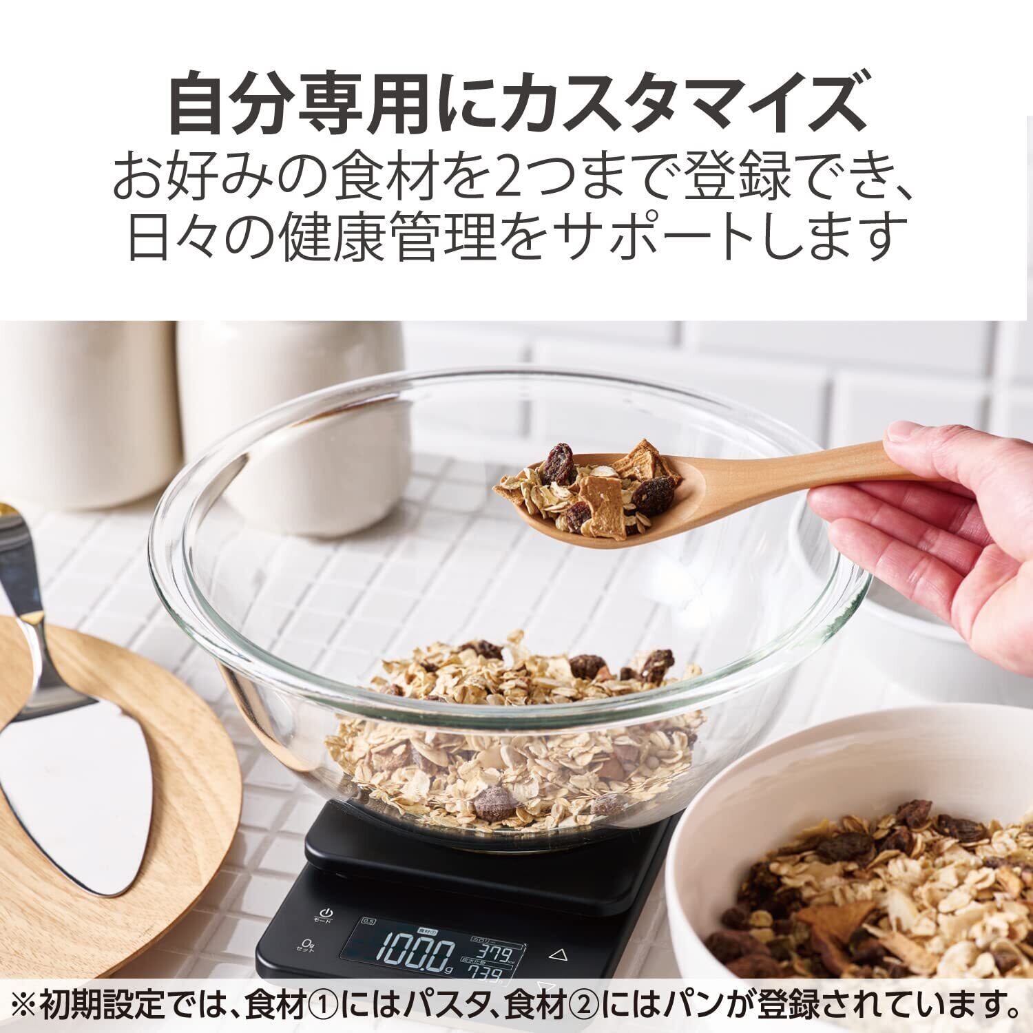 エレコム キッチンスケール 最大3kg 最小0.5g表示 【 カロリー計測 (ご飯+炭水化物2種登録) バックライト付 0g表示 自動電源オフ 】 ブラック HCS-KSA02BK