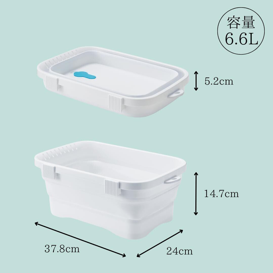 伊勢藤(ISETO) 洗い桶 キッチンソフトタブ ホワイト 6.6L 幅37.8×奥行24.0×高さ5.2~14.7cm 日本製 耐熱100℃ 折りたたみ 水抜き栓付き 吊り下げ可能 節水対策 キッチン I-590