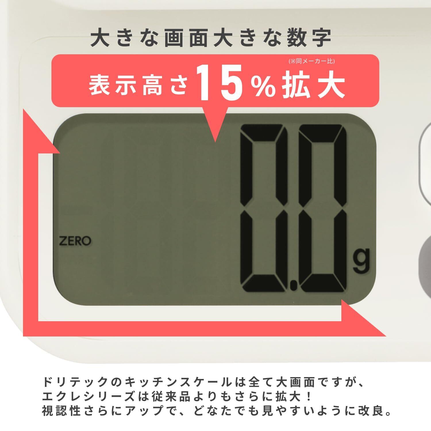 ドリテック(dretec) デジタルスケール 日本メーカー 2kg/0.1g単位 風袋引き 大画面 キッチンスケール 計り 料理 ホワイト