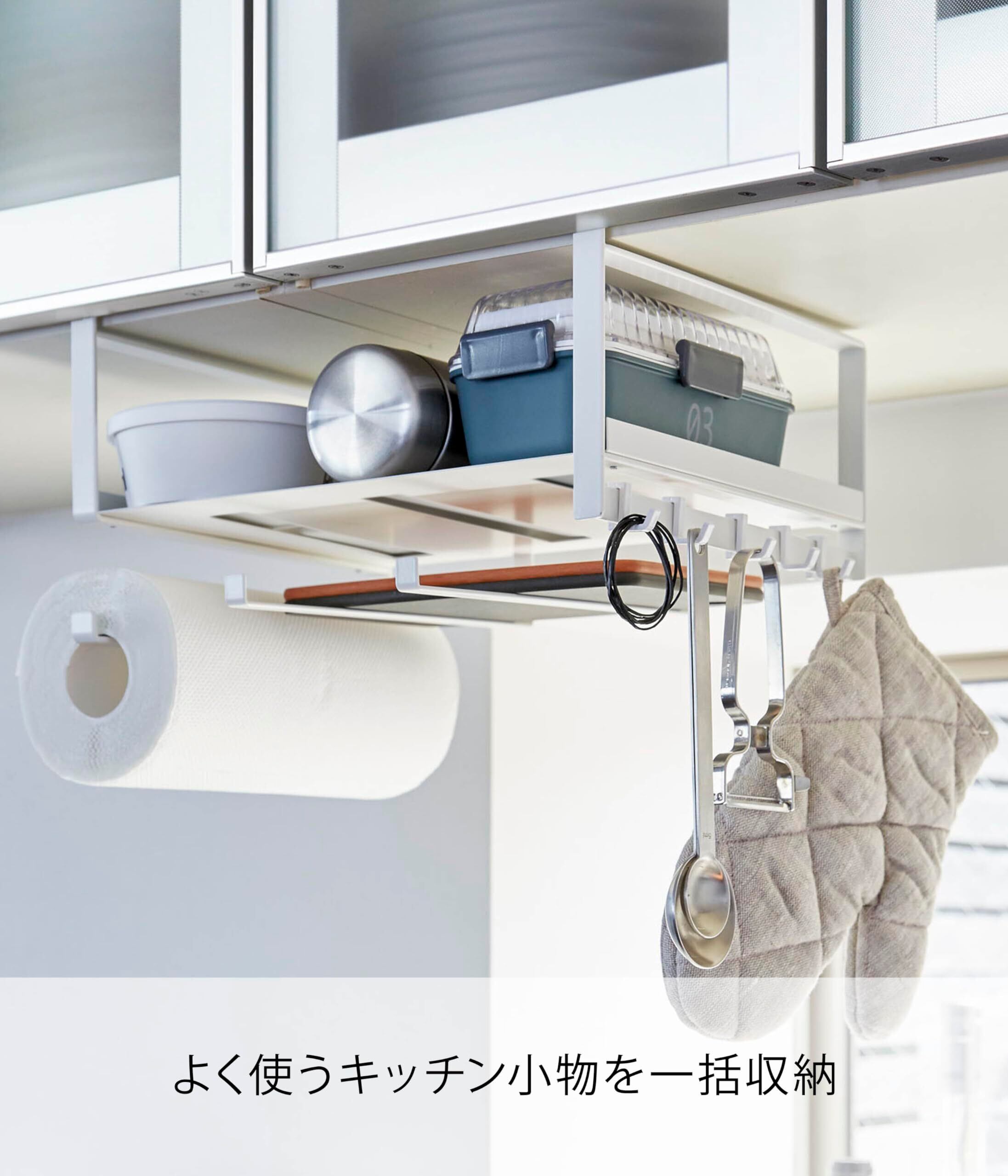 山崎実業(Yamazaki) 戸棚下 多機能ラック ホワイト 約W30.5XD24.5XH18cm プレート キッチン一括収納 キッチンペーパーホルダー 4746