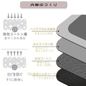 【吸水性・速乾性に優れている】特殊吸水繊維を使用したキッチンマットは多くの細かい穴が空いているため水分を素早く吸収。速乾性の優れた発泡層が早めに水を放出させるので、キッチンマットの表面はいつもサラサラ!