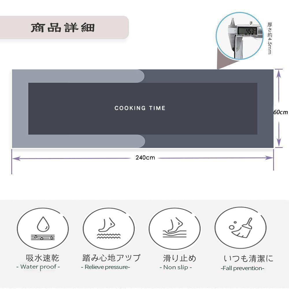キッチンマット 240キッチンマット60*240cm 拭ける 洗える 床保護マット 吸水速乾防汚 台所 マット フロアマット 滑り止め加工 ずれない 転倒防止 クッション性 お手入れ簡単 60x240cm