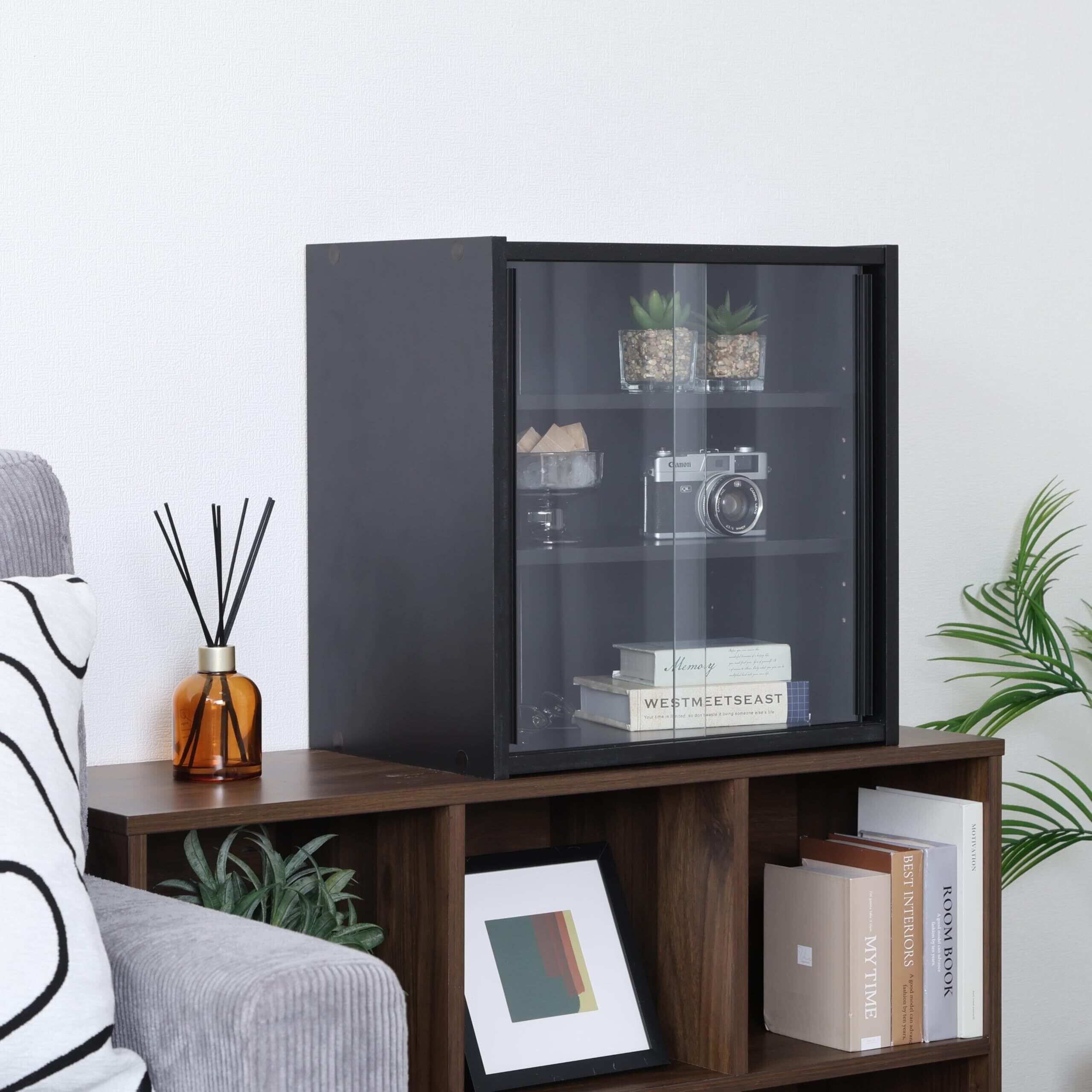 不二貿易 食器棚 キッチン収納 幅43×奥行29×高さ44cm ブラック ガラス扉 可動棚 組立品 99698