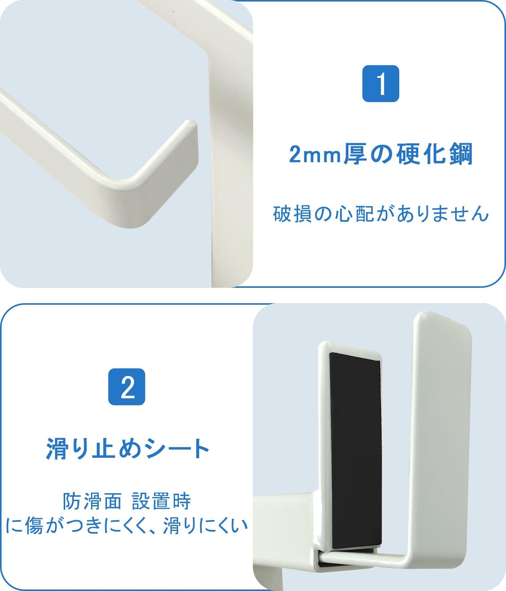 機能:このキッチンタオルラックは、ドアの厚みに合わせてネジで取り付け幅を調節できる伸縮式で、ドアに傷をつけないように底にクッションが付いています。