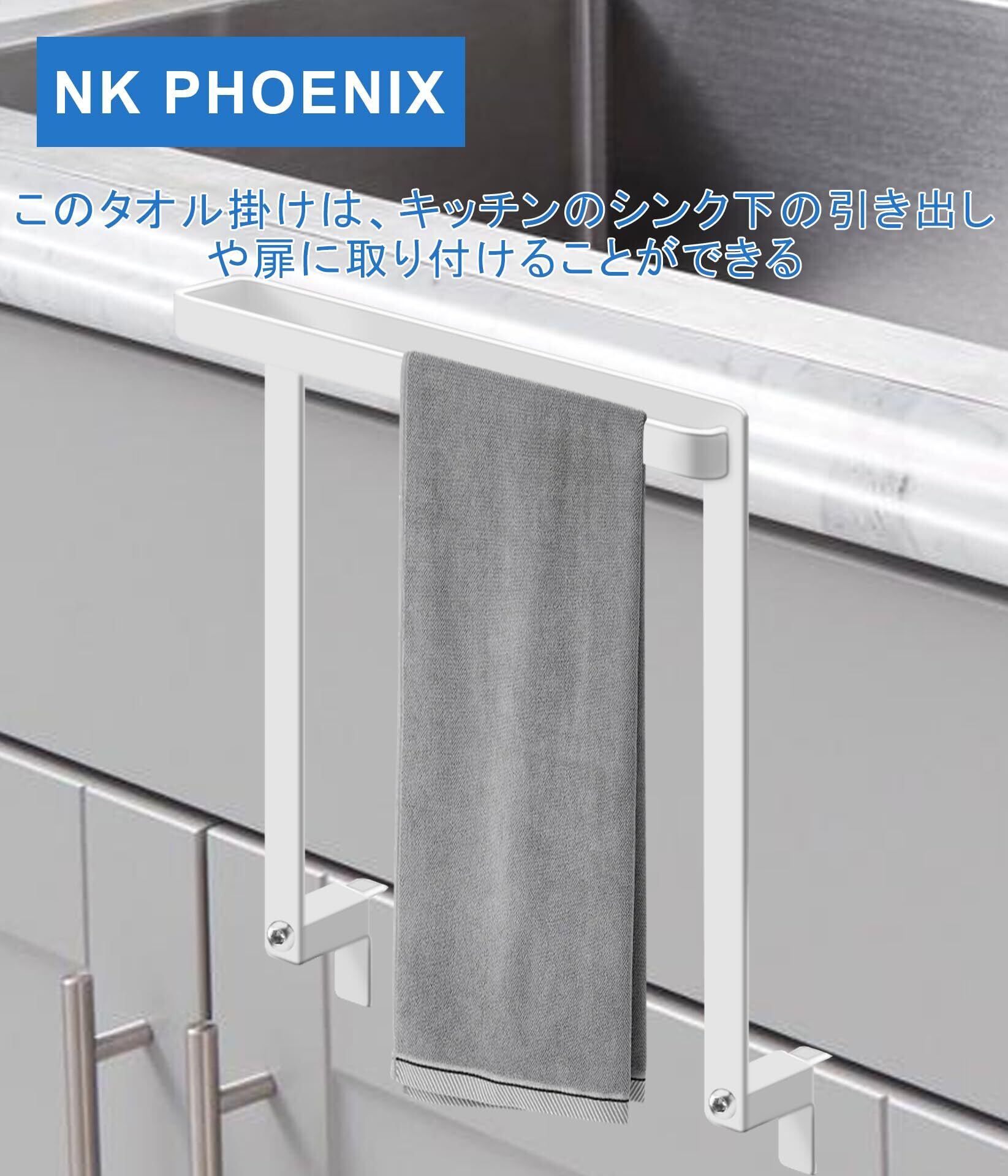 NK Phoenix キッチン タオル掛け タオルバー キッチンシンク下収納 キャビネット扉ホワイト タオルラック タオルハンガー 約W20 x D9-10 x H25.5cm