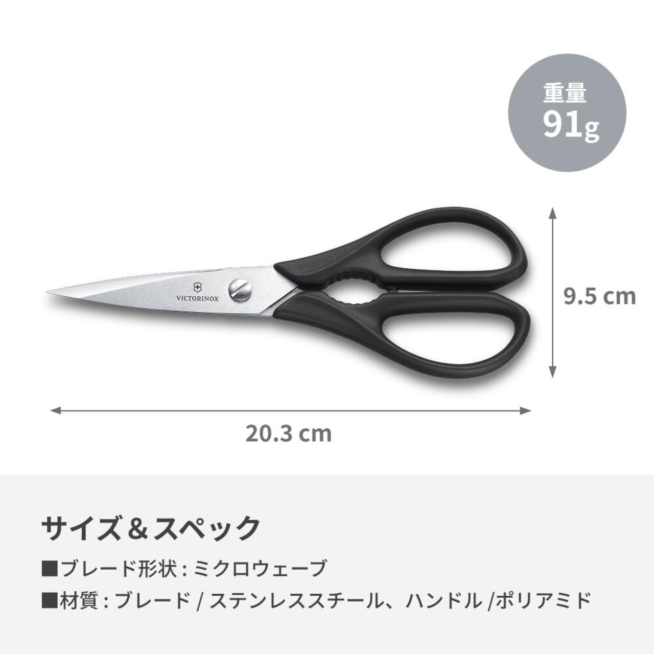 VICTORINOX(ビクトリノックス) キッチンはさみ 瓶の蓋を開けたりナッツを割ったり多目的に使用できるハサミ ブラック マイクロ波刃採用で鋭い切れ味 多機能 多目的 ステンレススチールブレード 7.6363.3