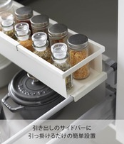 収納部の奥行は約10cmとスリムなのでスパイスボトルや保存容器などの小物収納に便利!