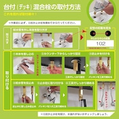 取り付け穴径23~27㎜、厚み5~37㎜、湯・水の芯ピッチ102mm。
