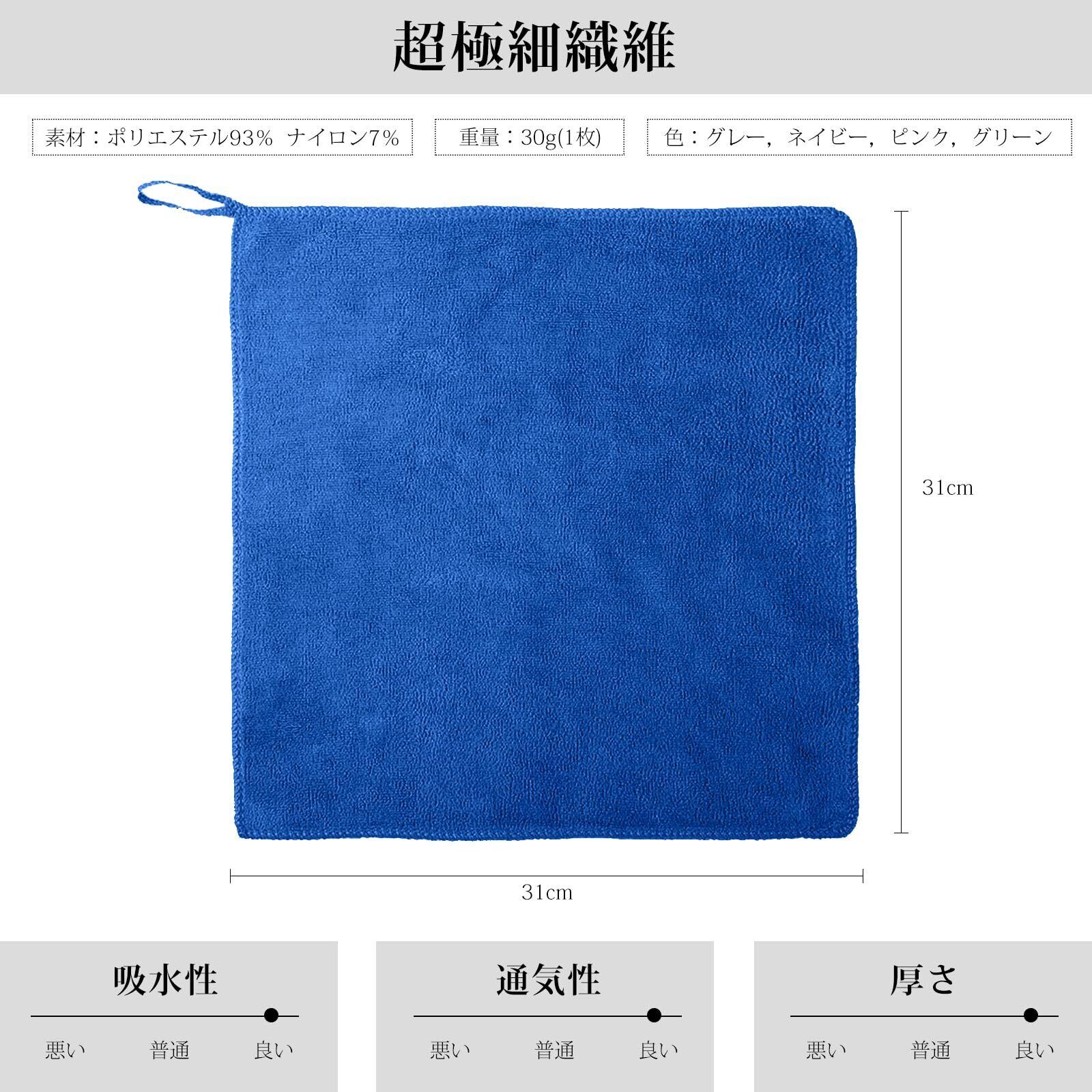 【素材】ポリエステル93% ナイロン7%、サイズ:約31 × 31 cm。手にぴったりのサイズで使いやすく、またマルチカラータオルは色ごとに用途を分けて使うと、さらに衛生的にお使いいただけます。
