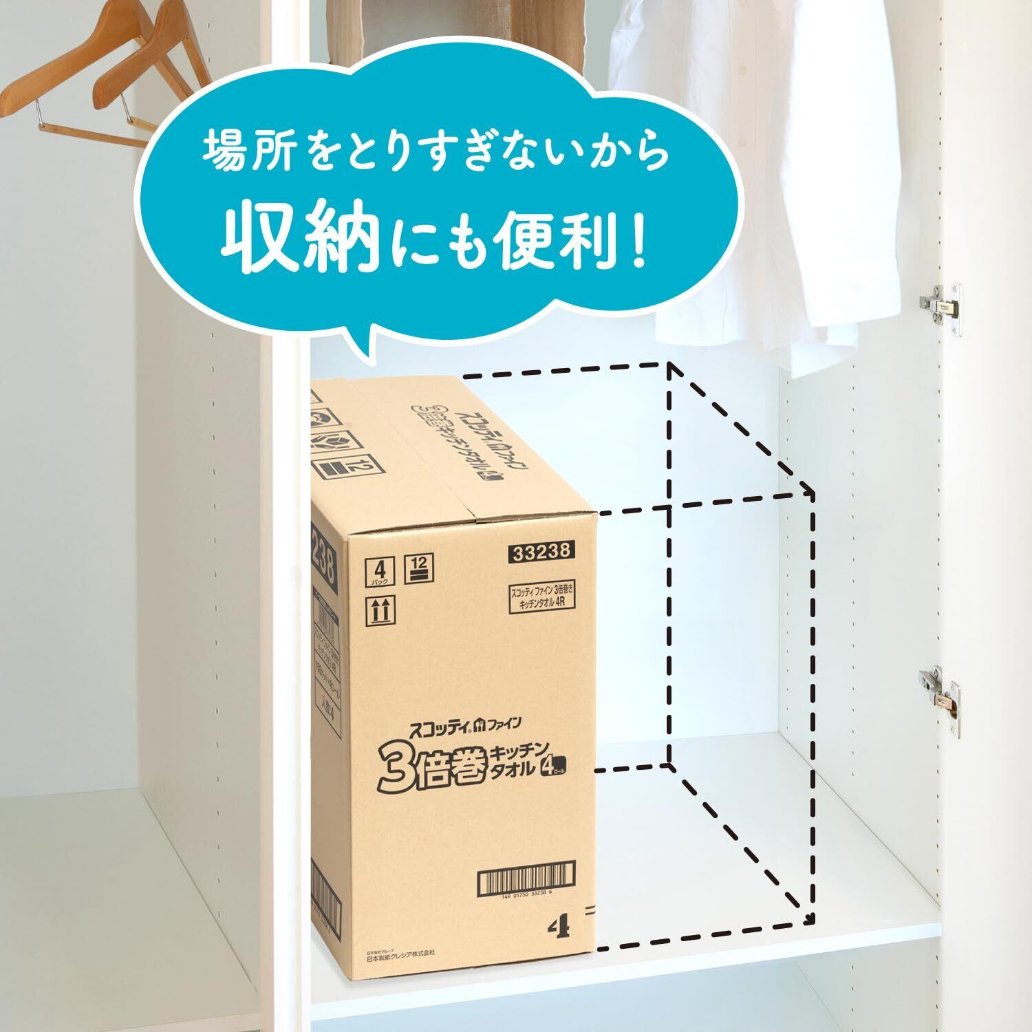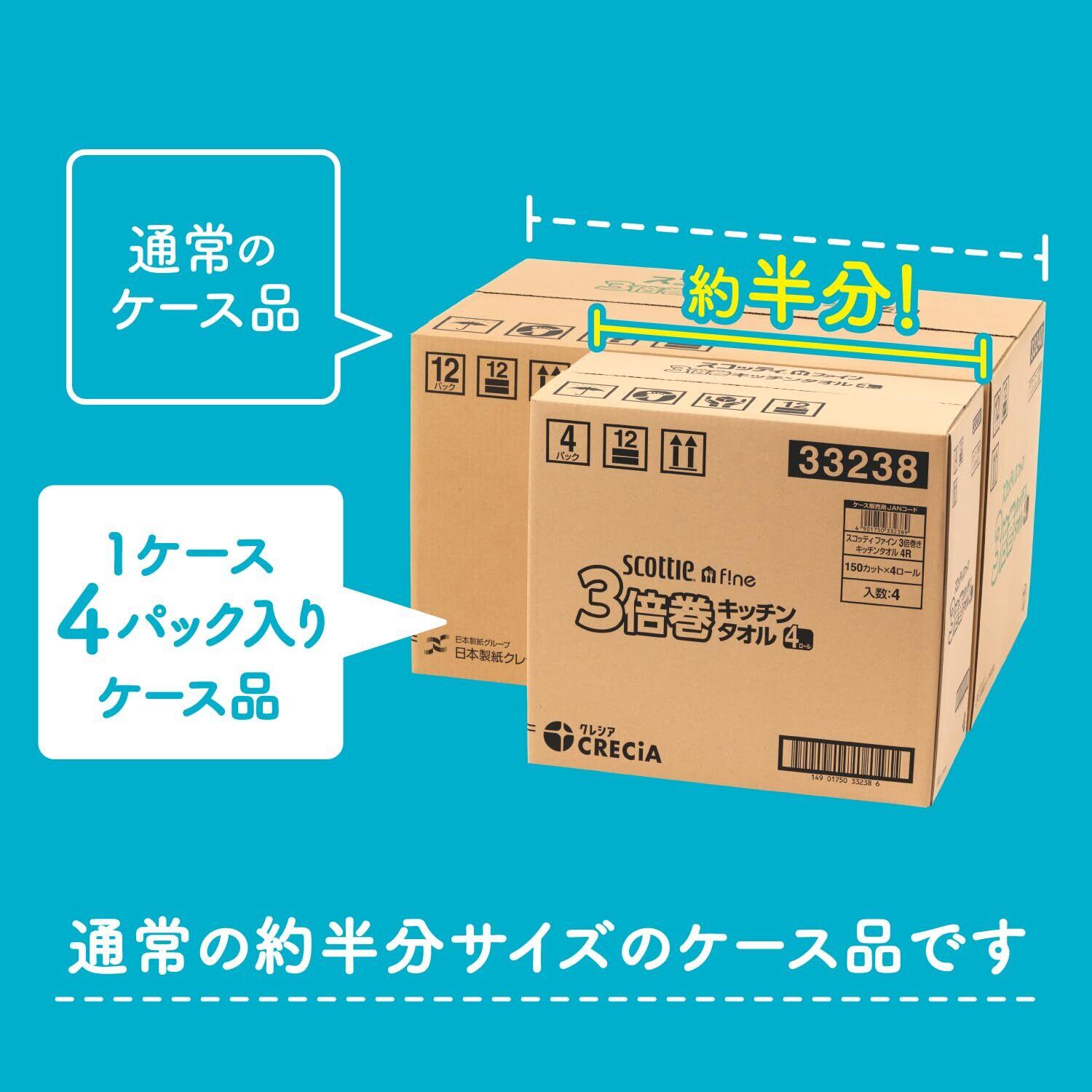 Scottie スコッティ 【ハーフケース品】 ファイン 3倍巻き キッチンタオル 150カット 4ロール×4パック入り