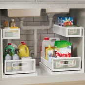 Ufriandz 洗面台下収納 シンク下収納ラック キッチン 2段 スライド式キッチン の 下 の 2個セット 調味料 多目的 L字型 引き出しイザー キャビネット下/厨房 用 小物整理 組立簡単 金属製 大容量 省スペース 27cm x 36cm x 20cm