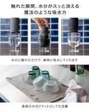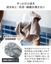 【魔法のような吸水力】髪の毛の1/100の超極細繊維が、食器の水滴をまるで魔法のようにスッと吸水します。