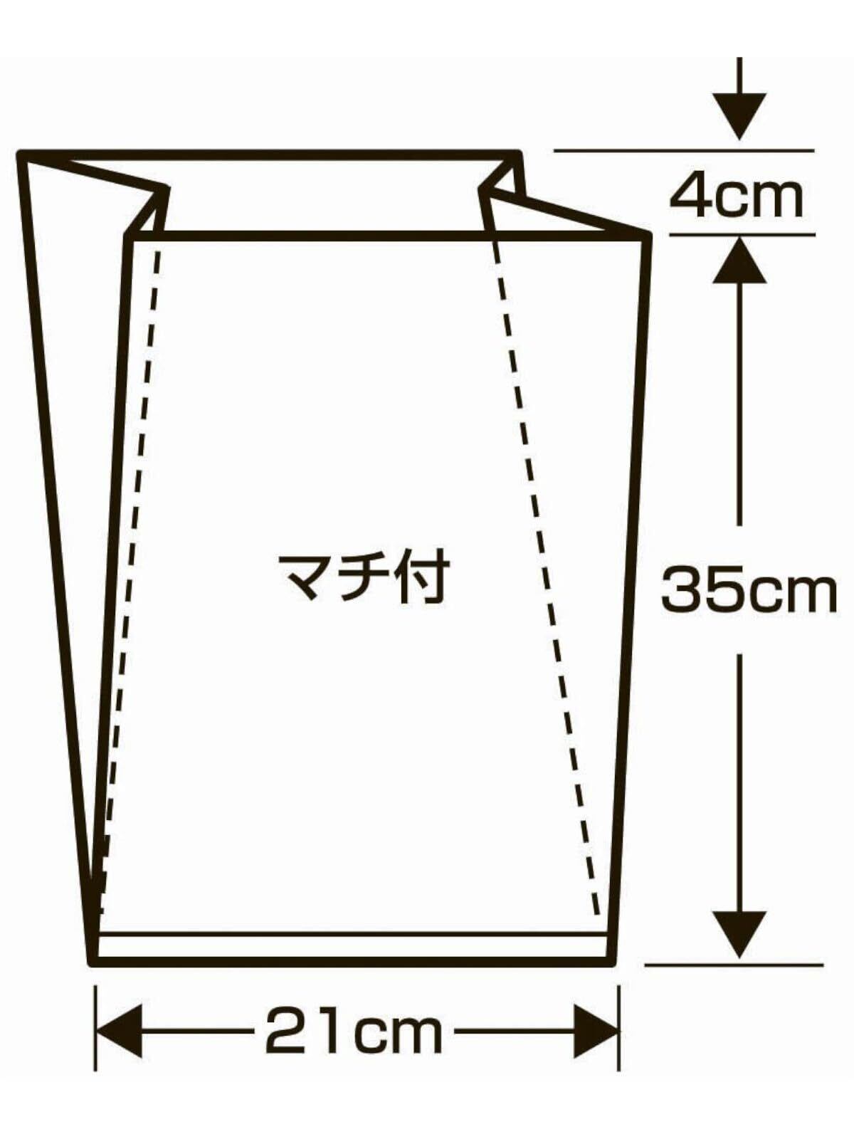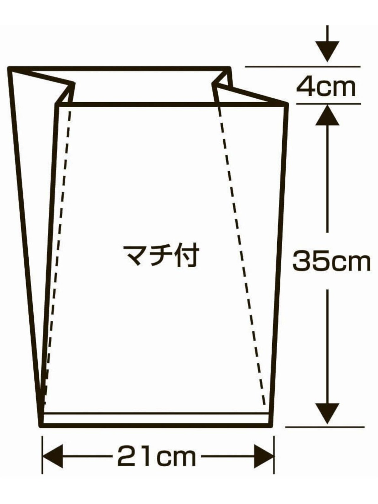 サイズ:縦35cm×横21cm+マチ4cm×厚み0.01mm